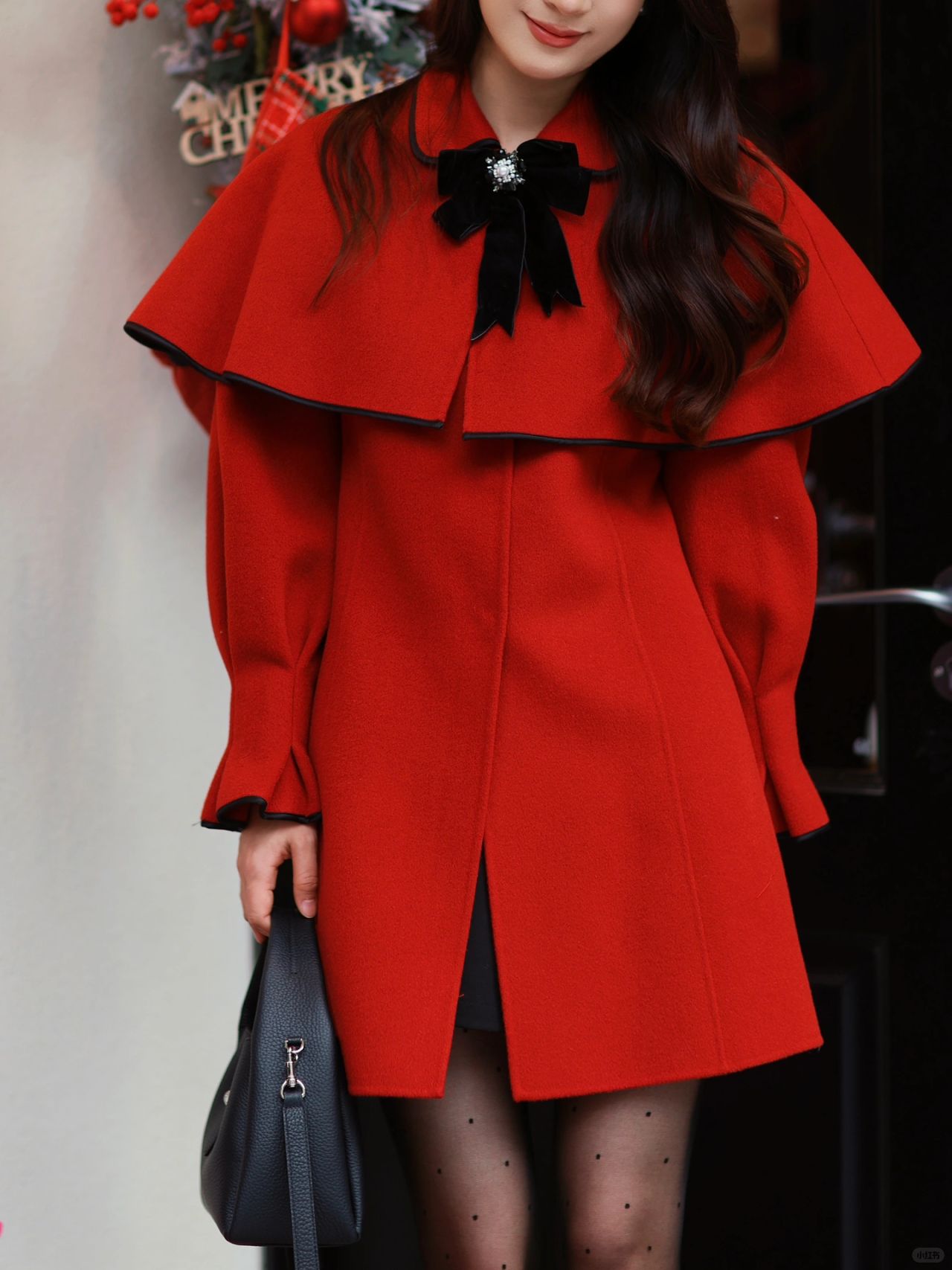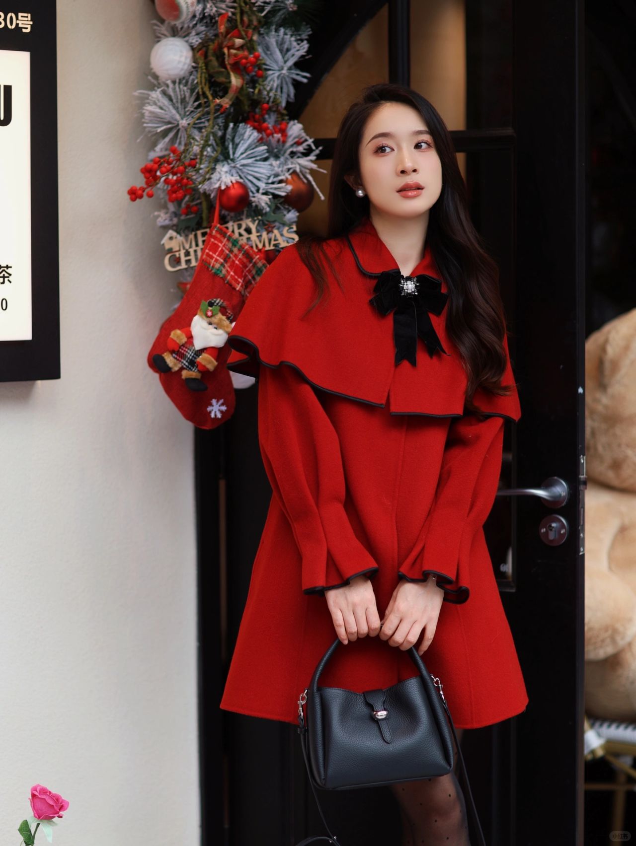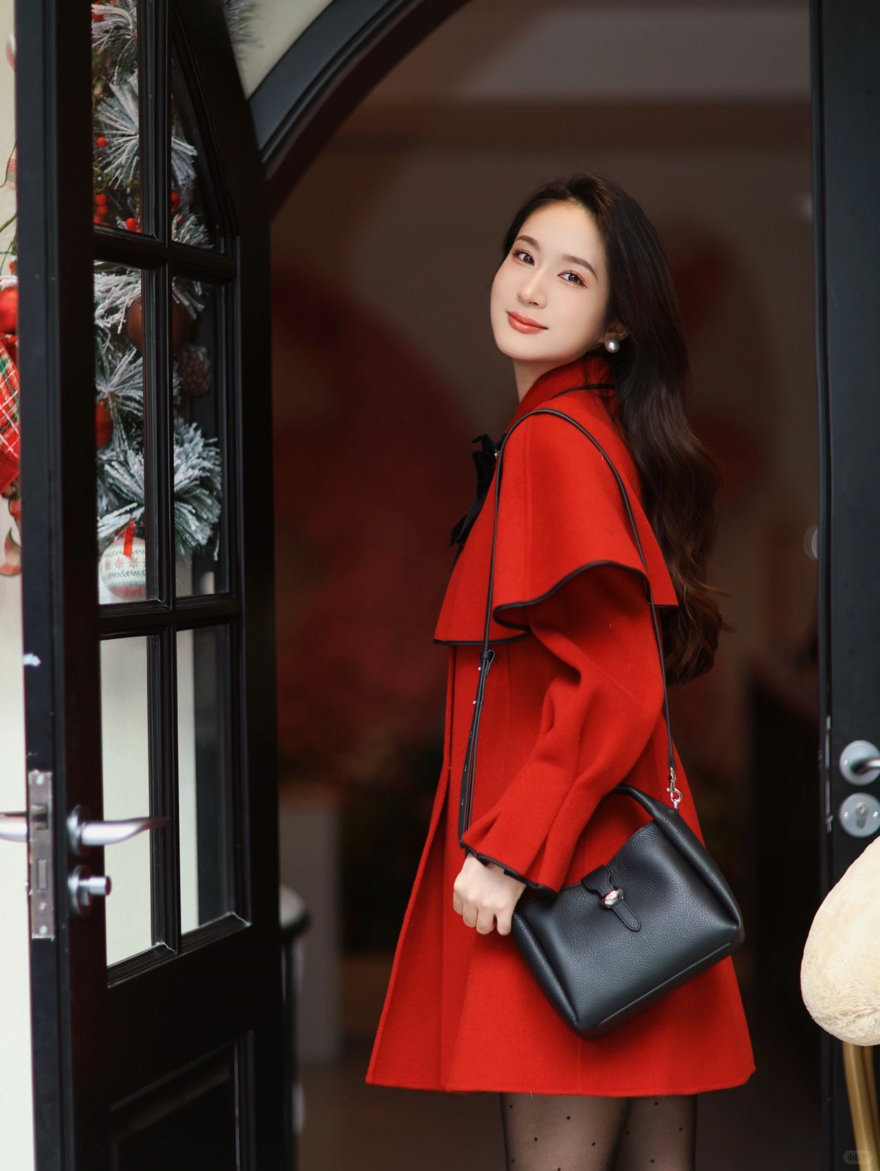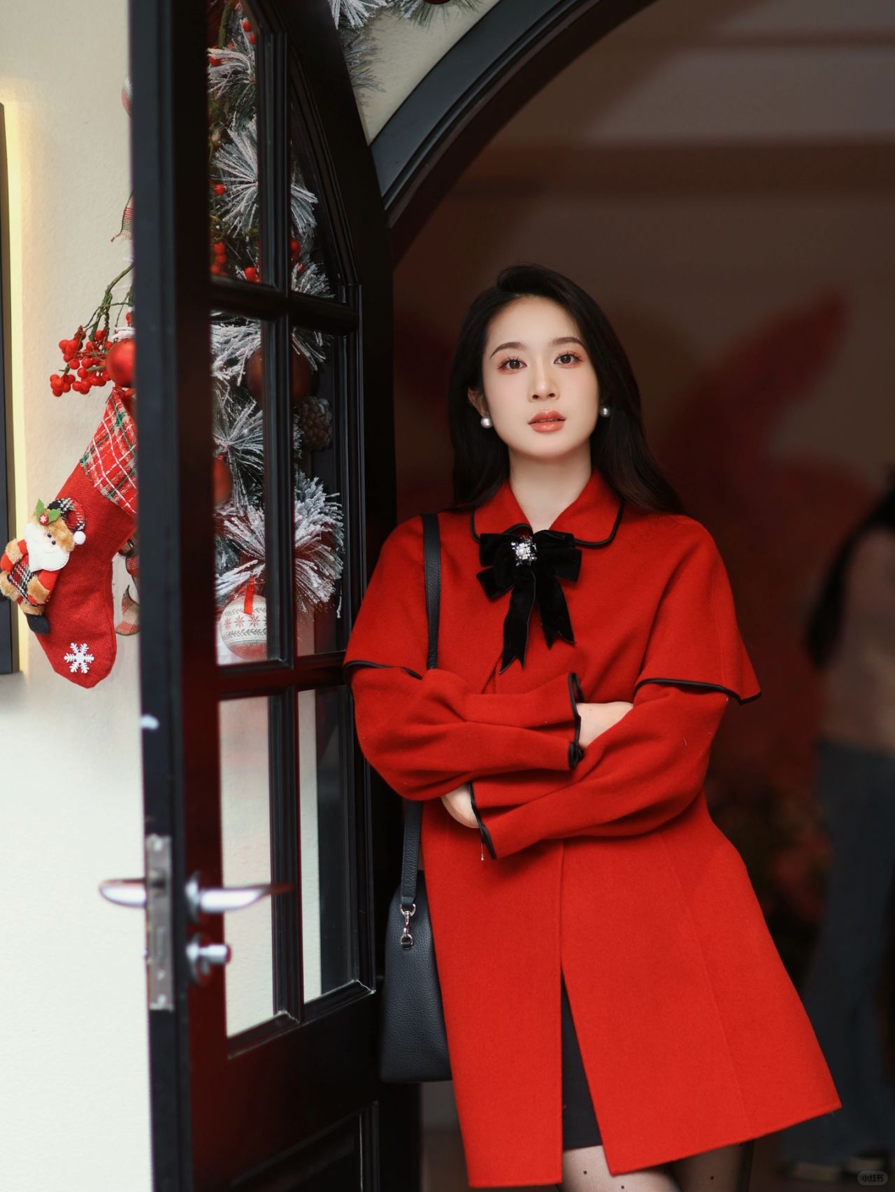 圣诞拍照 圣诞穿搭 红大衣 新年穿搭
