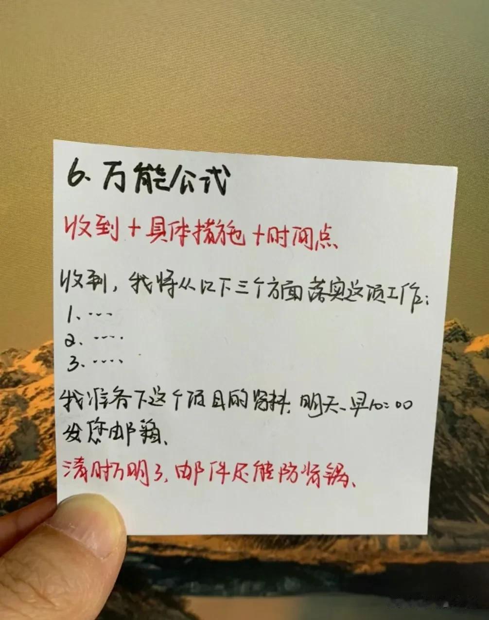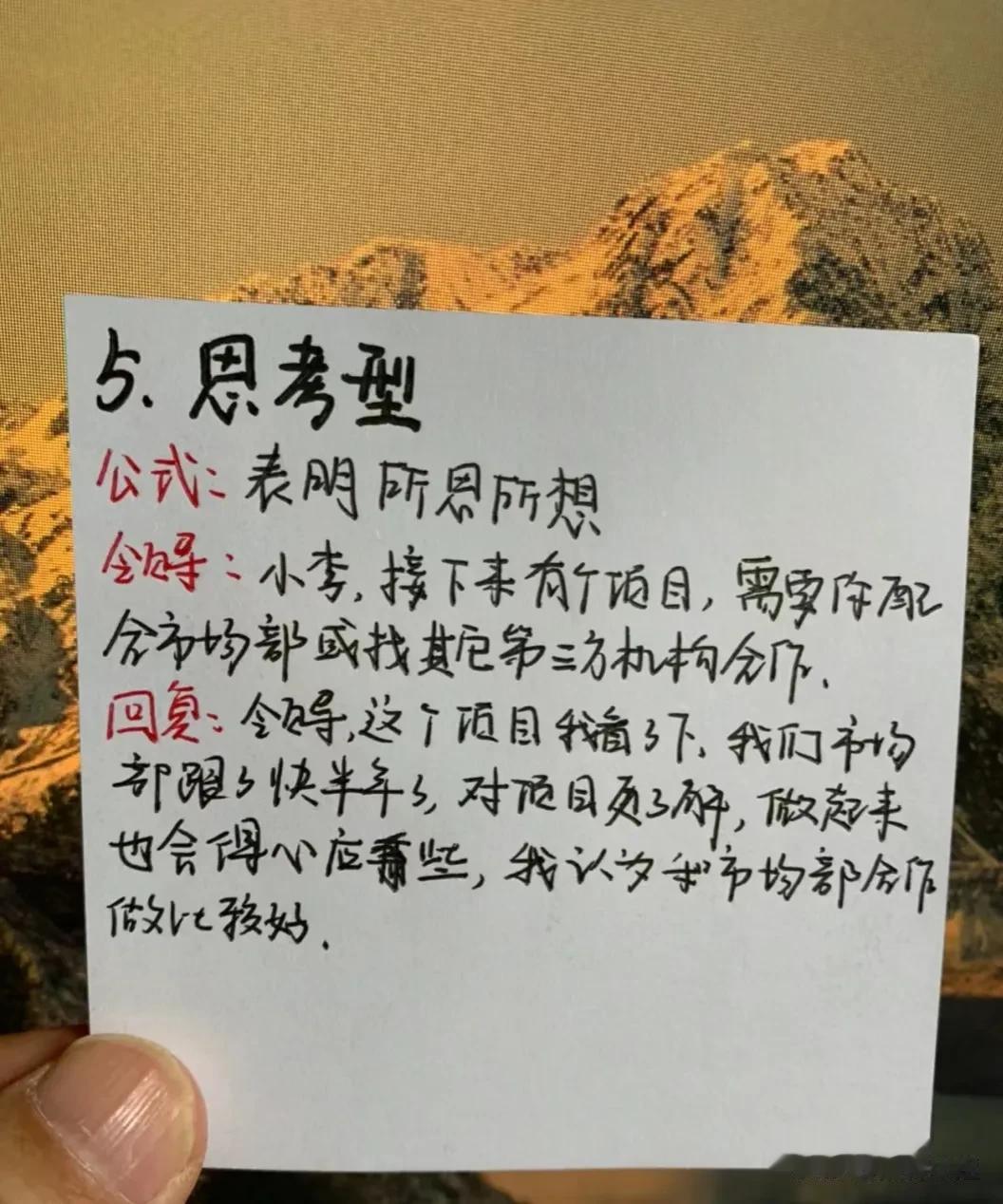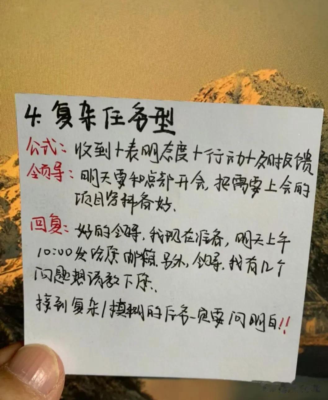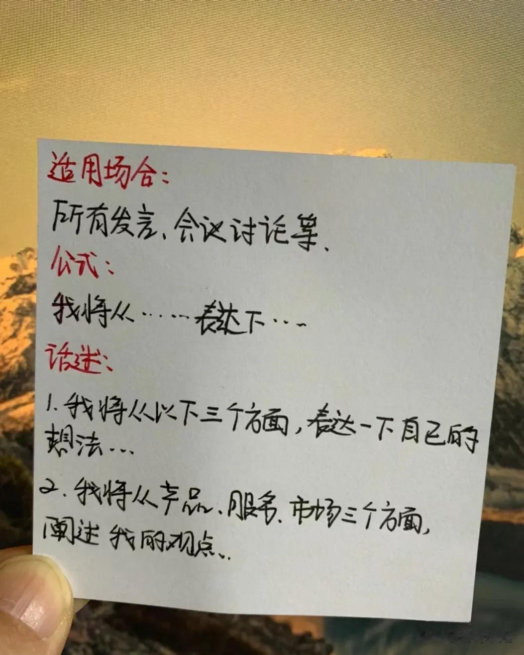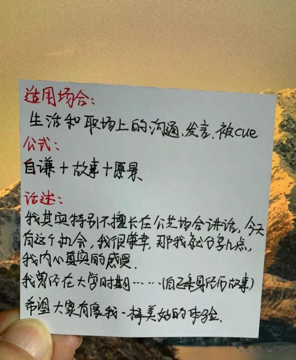 终于明白了!原来在工作中,竟然有这么多说话公式,难怪那些混得好的,一开口就能深得人心,让领导器重!比如领导给你布置任务,有6种不同场合下的回话公式!又比如领导突然让你发言,有5种场合下的发言公式,还有给领导拜年万能话述,简直太实用太全了!果断收藏!赶紧背下来,随时能派上用场!一次有效的发言,能征服所有人,给自己赢得升职加薪的机会! 口才对于个人成长和事业发展都有着重要的作用。赶紧下方链接系统的学起!