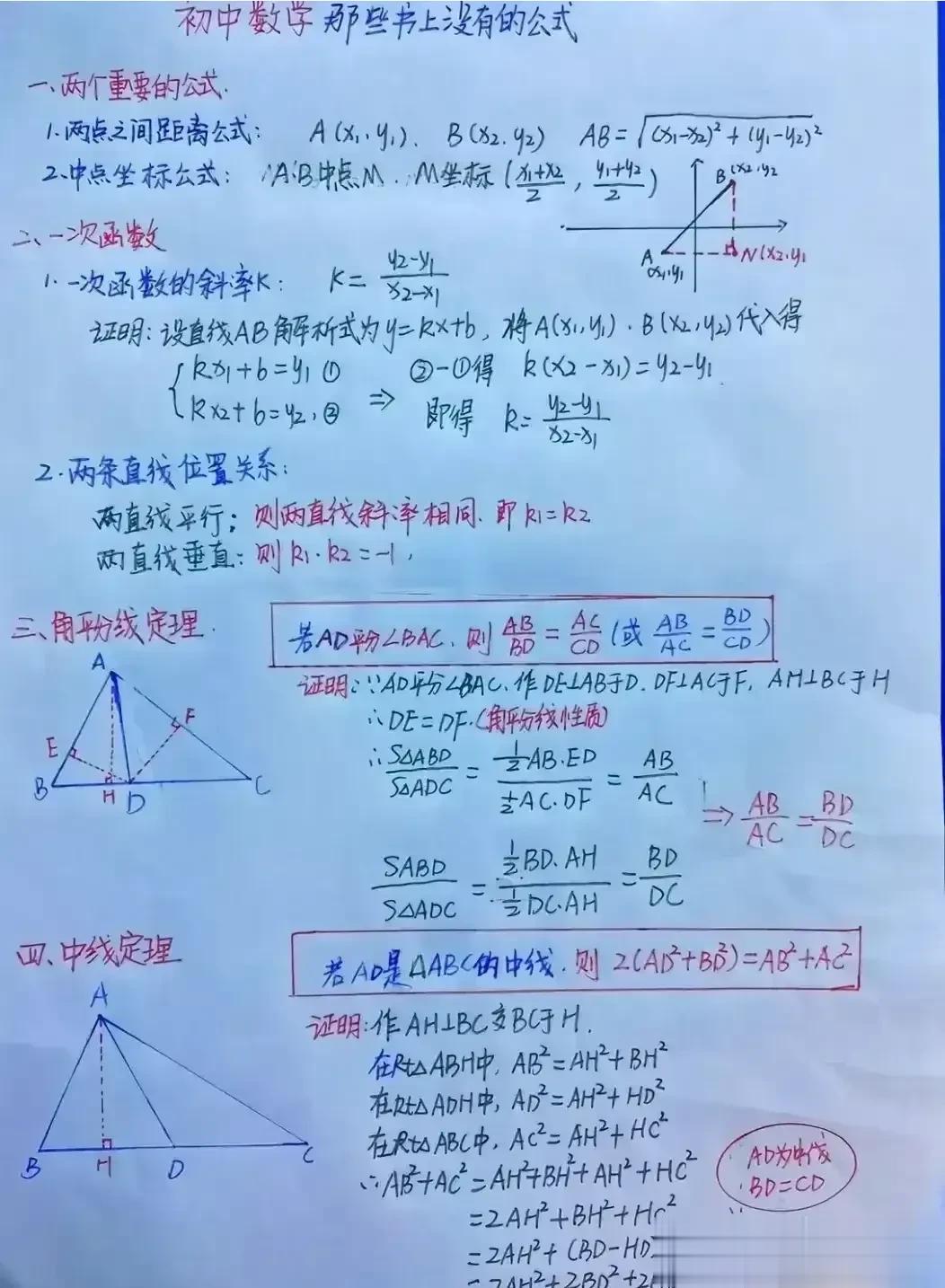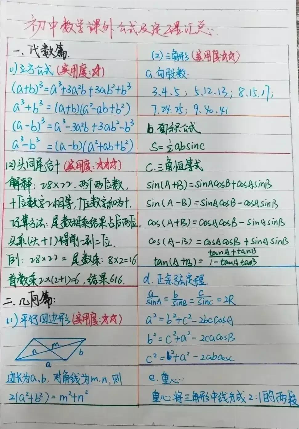一线中考状元直言:想提高初中数学成绩,就把这18张数学必考知识点背下来,看完之后,被这漂亮的笔记惊艳到了,知识点简直太全了,太适合初中的孩子学习。什么计算公式、几何模型以及课本上没有的公式,全都在这里。据说,学霸早就把这些知识点吃透了,每次轻松拿110+! 若孩子攻克这些知识点,灵活运用,成绩轻松提升。 初中数学四大金刚大招