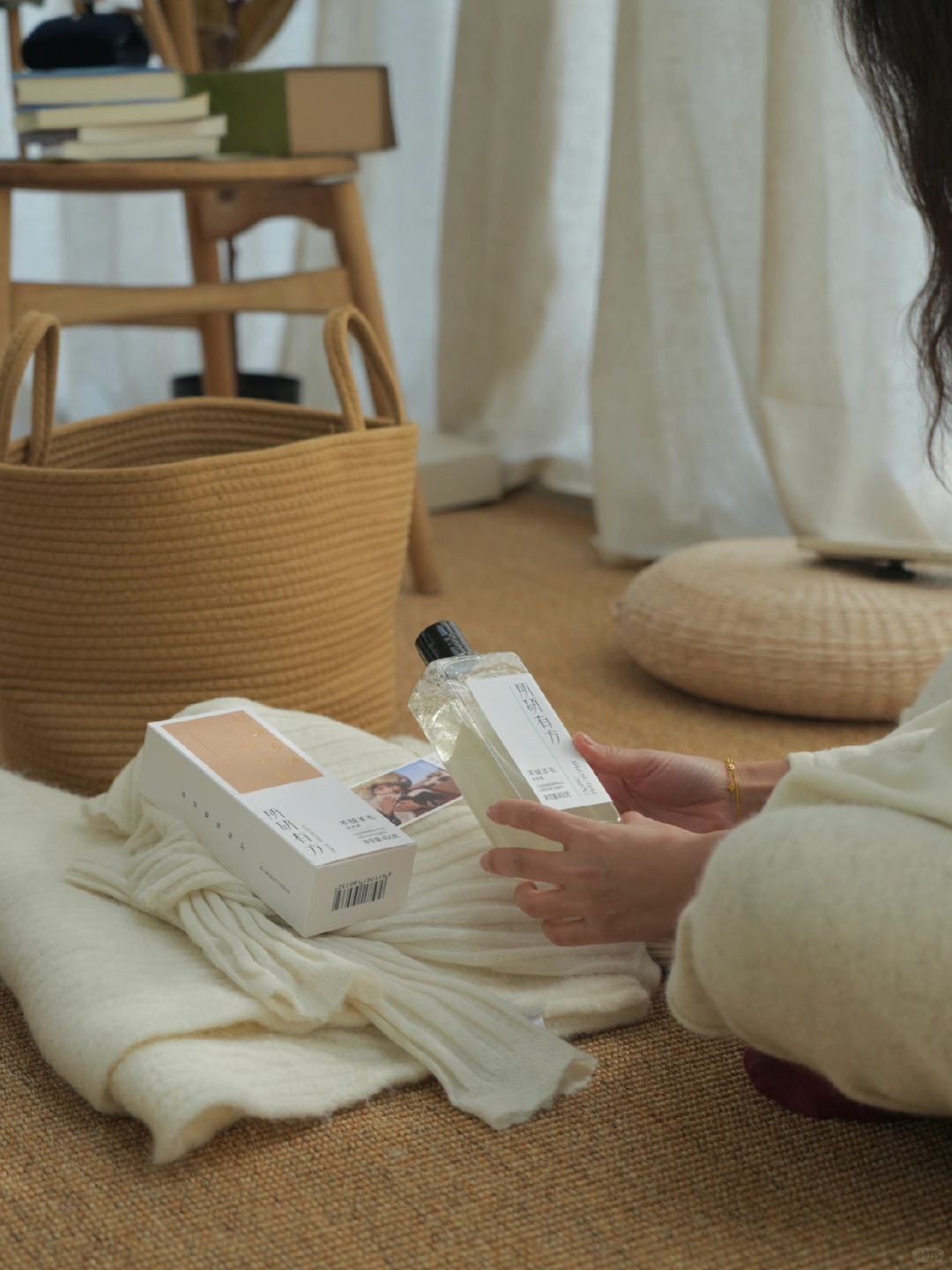 洗护后的羊绒衣物,带着淡淡的檀木香,温暖内敛;