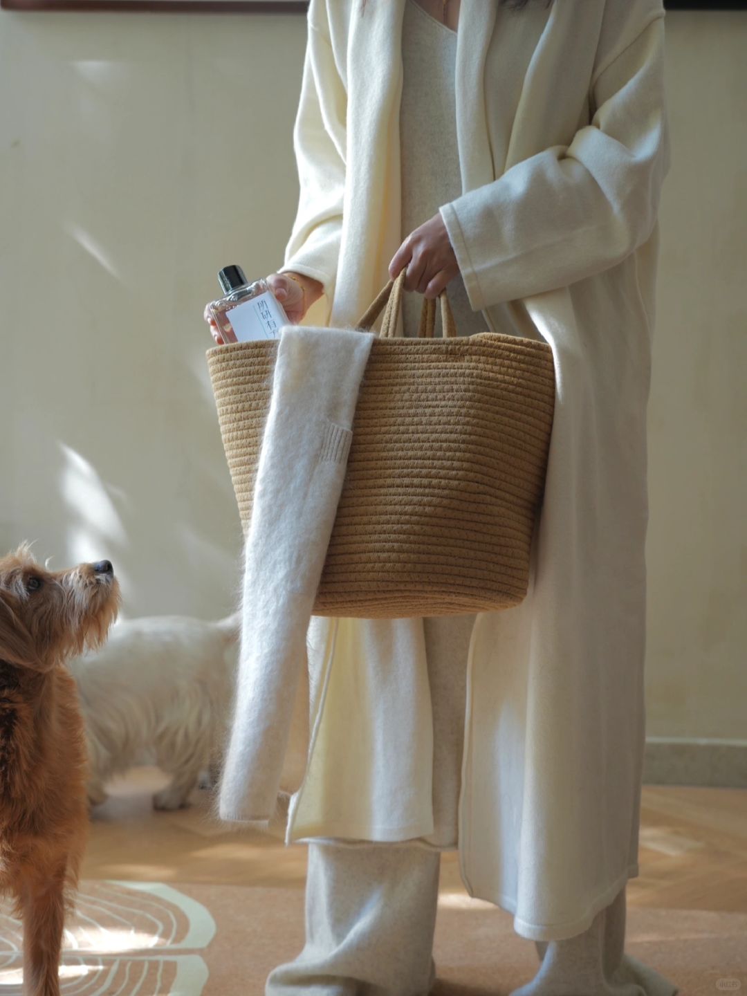 夏天爱真丝,秋冬爱羊绒驼绒,好物带来的幸福与满足感也直抵内心。
