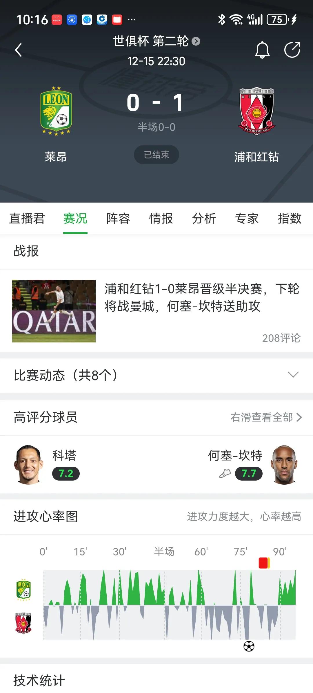 这吉达联合确实有点菜啊[捂脸]买了本泽马、坎特和法比尼奥,居然连非洲球队开罗国民都赢不了。所谓的沙特土豪也就那样,估计也就只有利雅得新月和利雅得胜利有点实力。倒是另一支亚洲球队浦和红钻表现不错晋级四强。不知道浦和能否给曼城制造点麻烦。