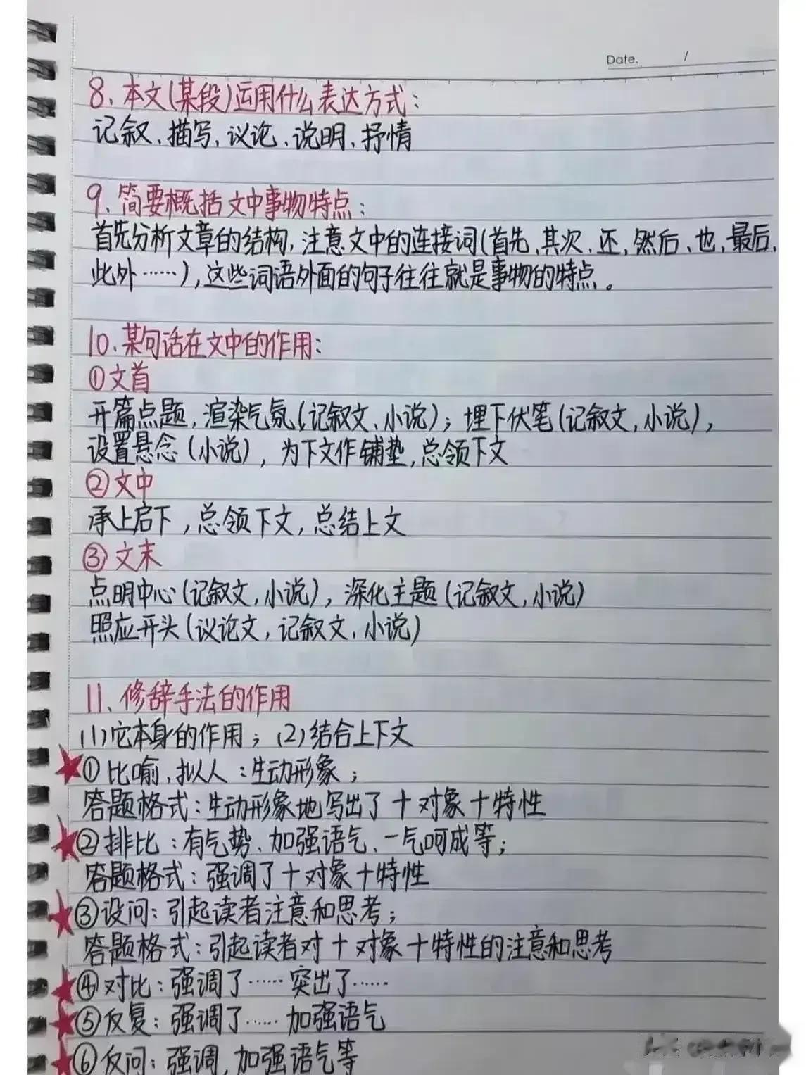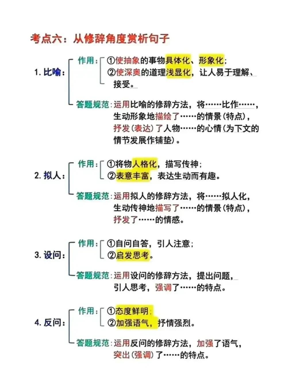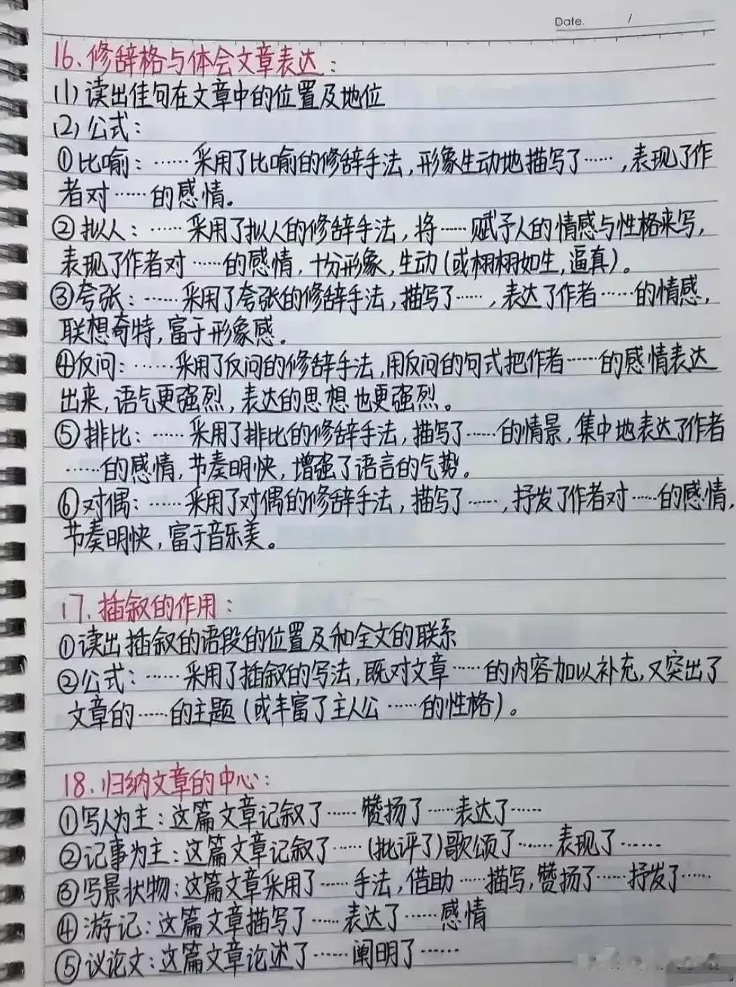 我的妈呀!!快期末考试了才知道,原来语文阅读理解是有答题公式的,难怪学霸早就把阅读答题公式摘抄下来背诵并熟练运用了,真的后悔知道的太晚了!家有孩子的,赶紧保存下来背熟!期末考试还能冲刺一把!让孩子答题答到点子上。 下方阅读答题公式,寒假让孩子记一记,练一练!让语文阅读和作文更上一层楼! 中小学阅读答题公式