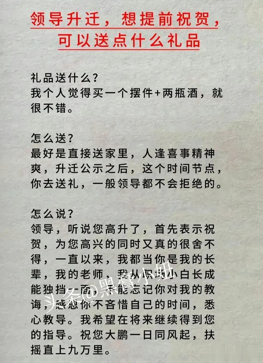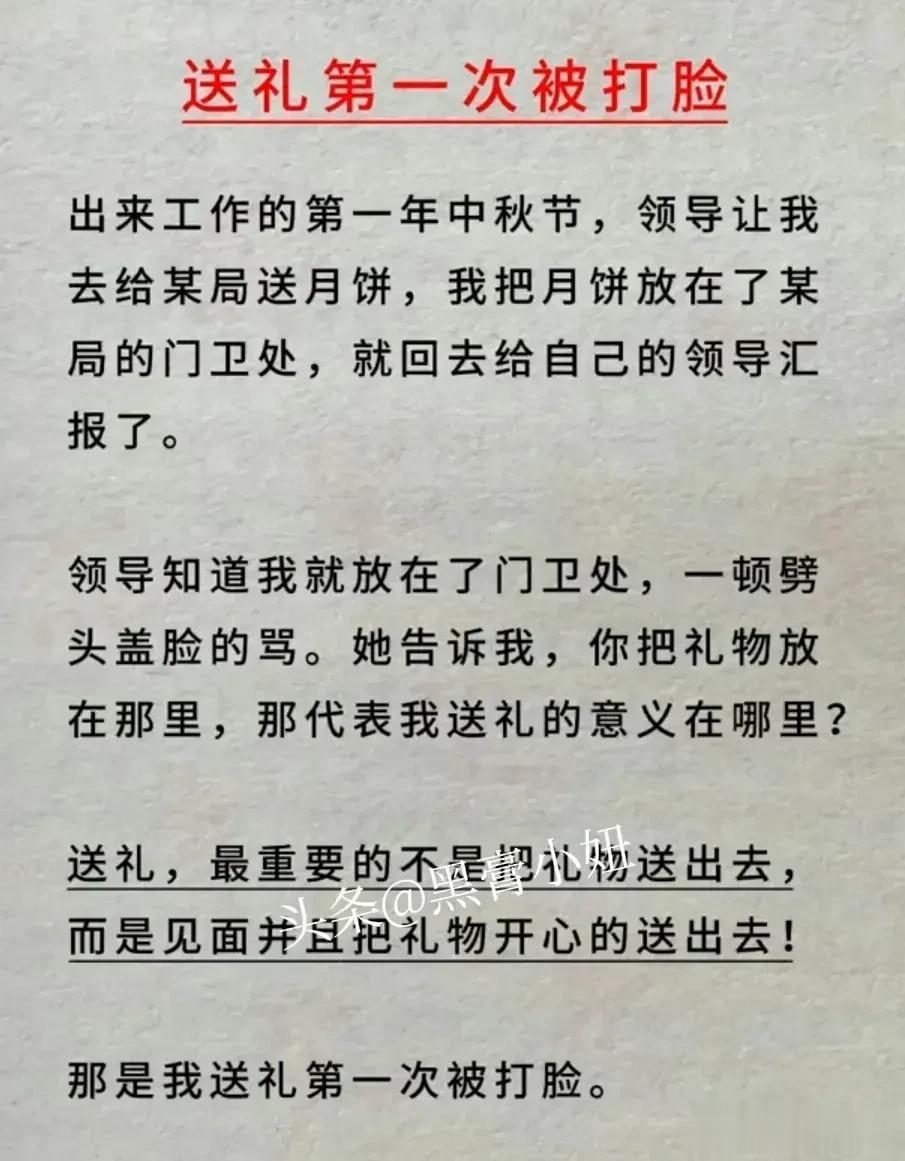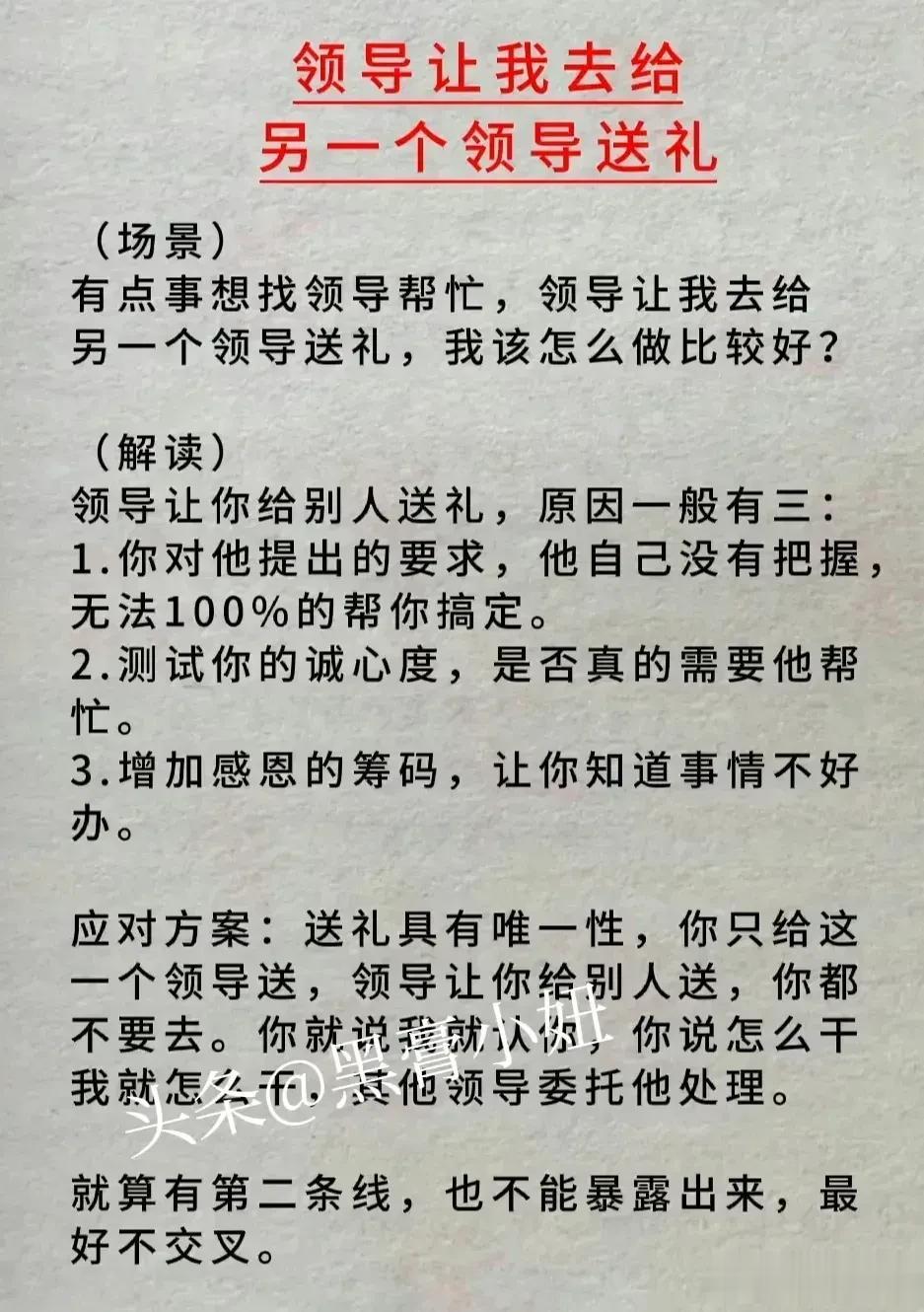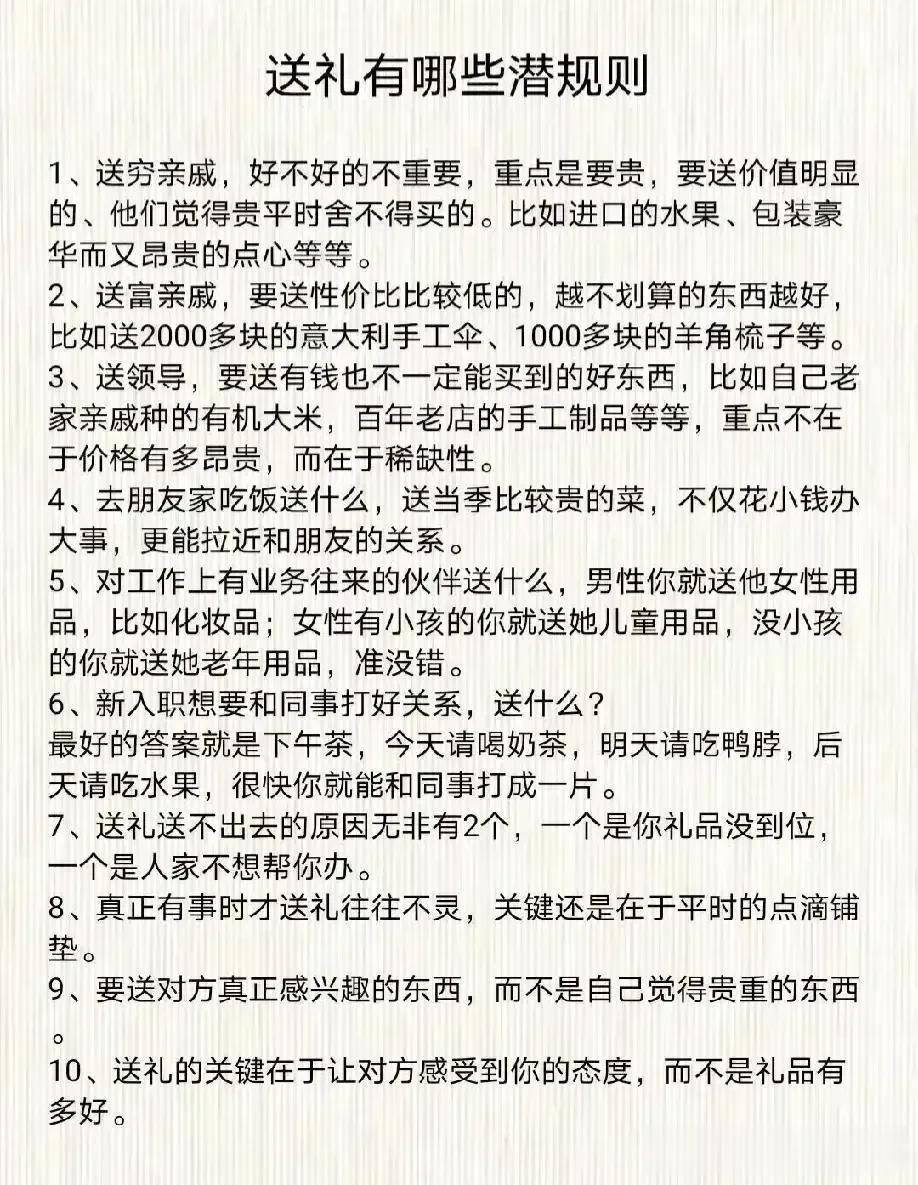 这句话太精辟了!你有多会送礼,就有多成功!原来会送礼的人,混得都不差!第一次见到这么全的送礼潜规则和技巧,若悟透一二,让你混的风生水起! 王志文说:"会送礼,会求人的人,改变命运都非常简单。" 想求人办事,必须要会送礼,正确的送礼和求人方式可以建立良好的人际关系,增加成功的机会。真的是那一句,礼送成了,事就好了! 更多技巧在下方链接!感兴趣的朋友可以多读一读! 中国式应酬送礼办事