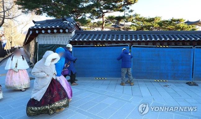 #韩国社会#【韩国知名景点景福宫外墙遭不明人士涂鸦】 12月16日,韩国代表性