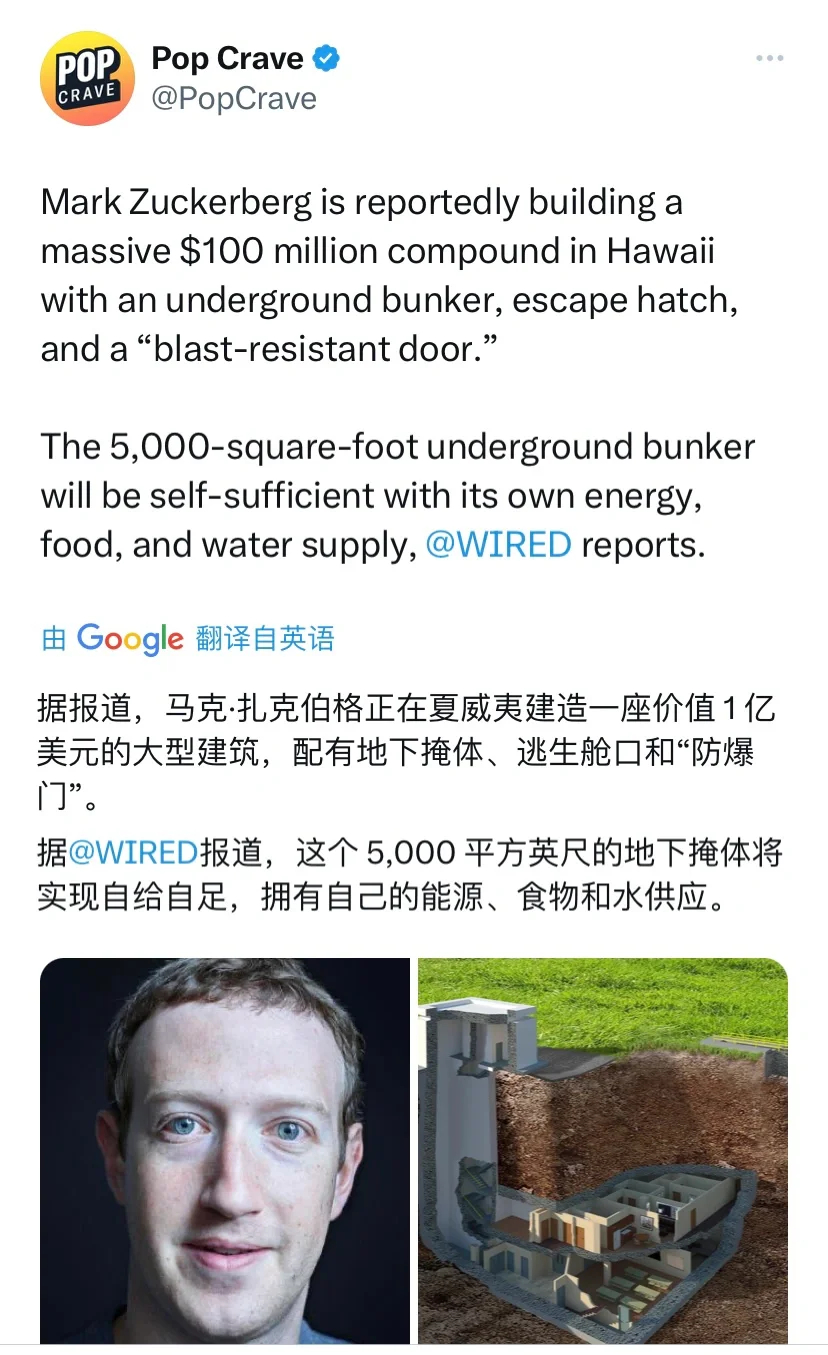 扎克伯格在夏威夷岛花了1亿美金搞了个自给自足安全屋,炸出了一大堆阴谋论!