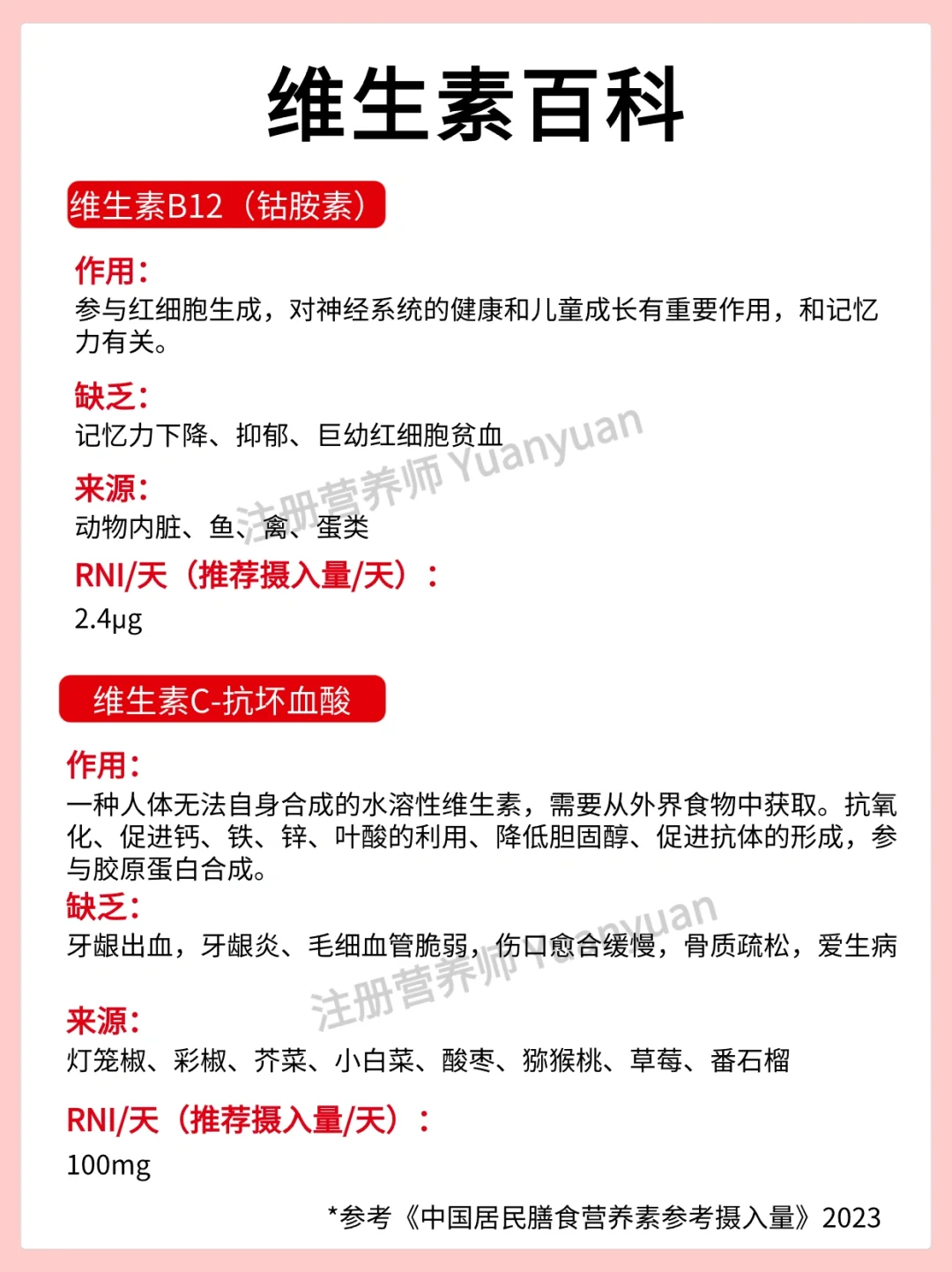 🥗维生素都有推荐的量RNI(推荐摄入量)或者AI(适宜摄入量),RNI和AI 是针对固定人群(例如,18-49岁女性或男性)通过大量的观察/实验数据获得或者通过计算得出的营养素摄入量。有的维生素还有UL(可耐受最高摄入量)