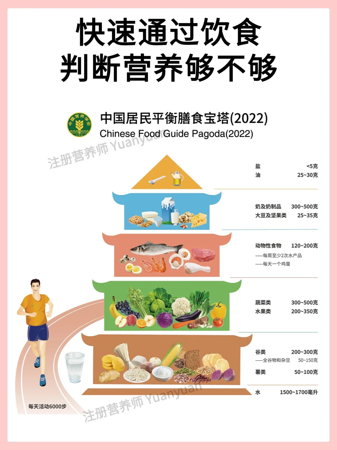 看图4,根据2022版膳食指南自查饮食,吃不够的话,大概率是缺乏某些营养的。(图中是成人的参考)