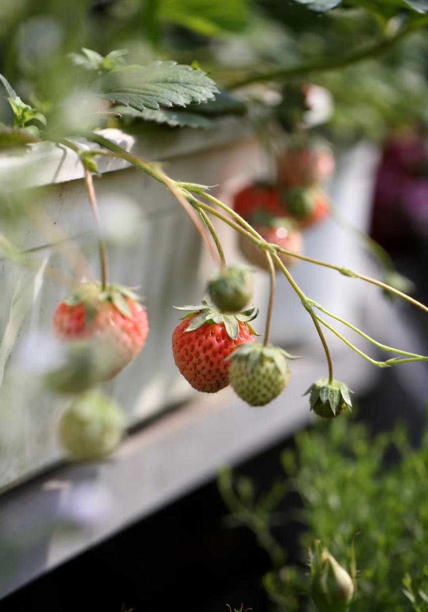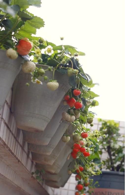 草莓应该也是最适合阳台党种植的水果盆栽了,整个冠幅和株高也就三十来公分,不占什么面积,一个小花盆就能成功种植,立体花架更是可以种出成片的草莓了。另外草莓还是多年生的草本植物,因此我们种一次,年年都有草莓吃。