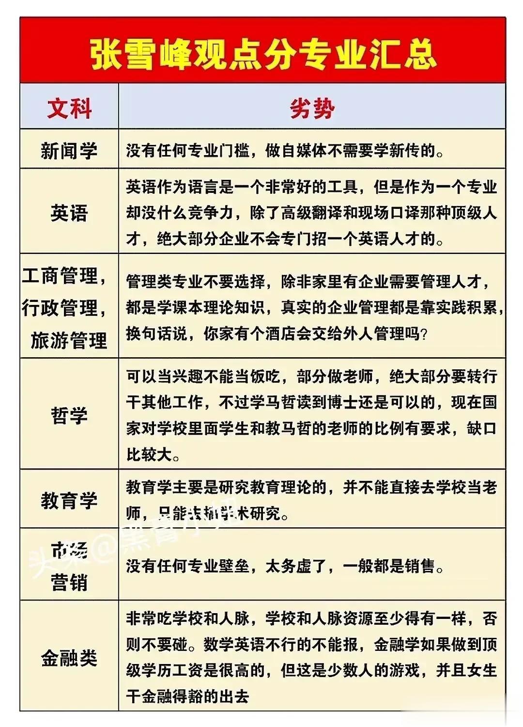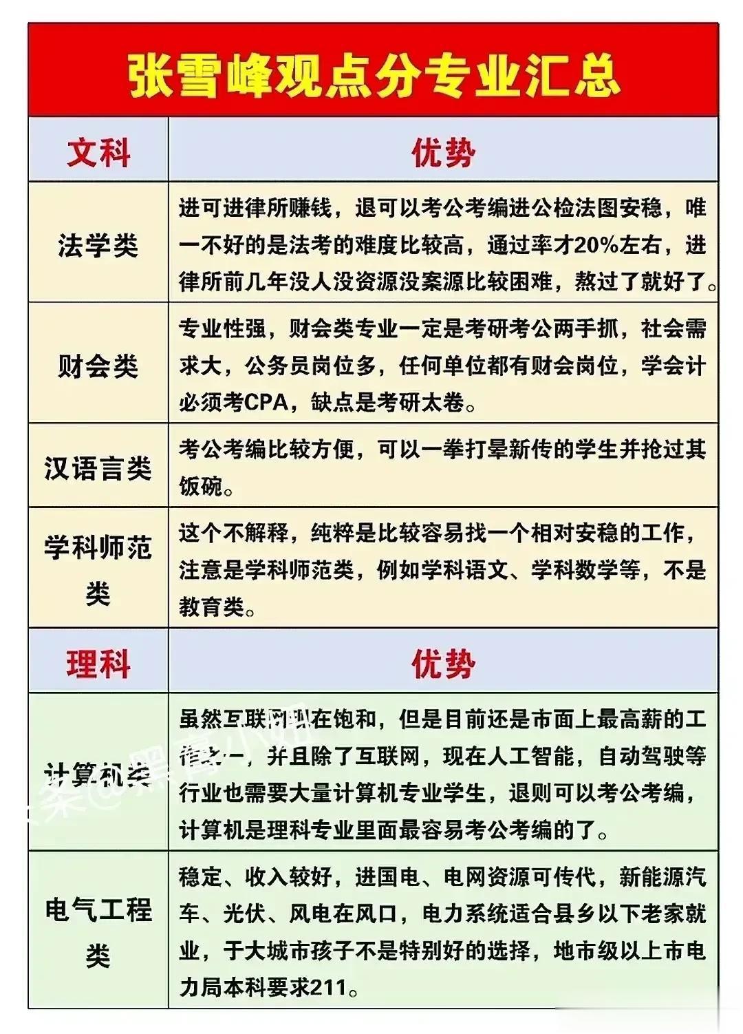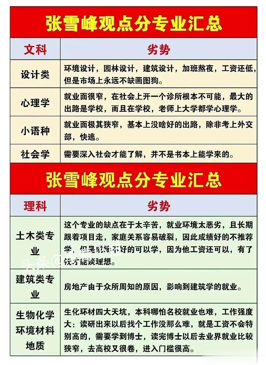 太厉害了[赞]!张雪峰老师的路子有多野!看完之后,真的惊艳到了,十年寒窗苦读不容易,考上大学后选个好专业很关键,张雪峰老师把钱💰途最好的专业、最挣钱的医学专业、大学专业推荐、院校推荐、文理科专业优劣势等全都详细的整理出来了!家里有孩子的收藏起来,提前了解一下,早点给孩子做好规划,让孩子少走弯路,不给孩子的人生留下遗憾! 决胜高中志愿专业分析