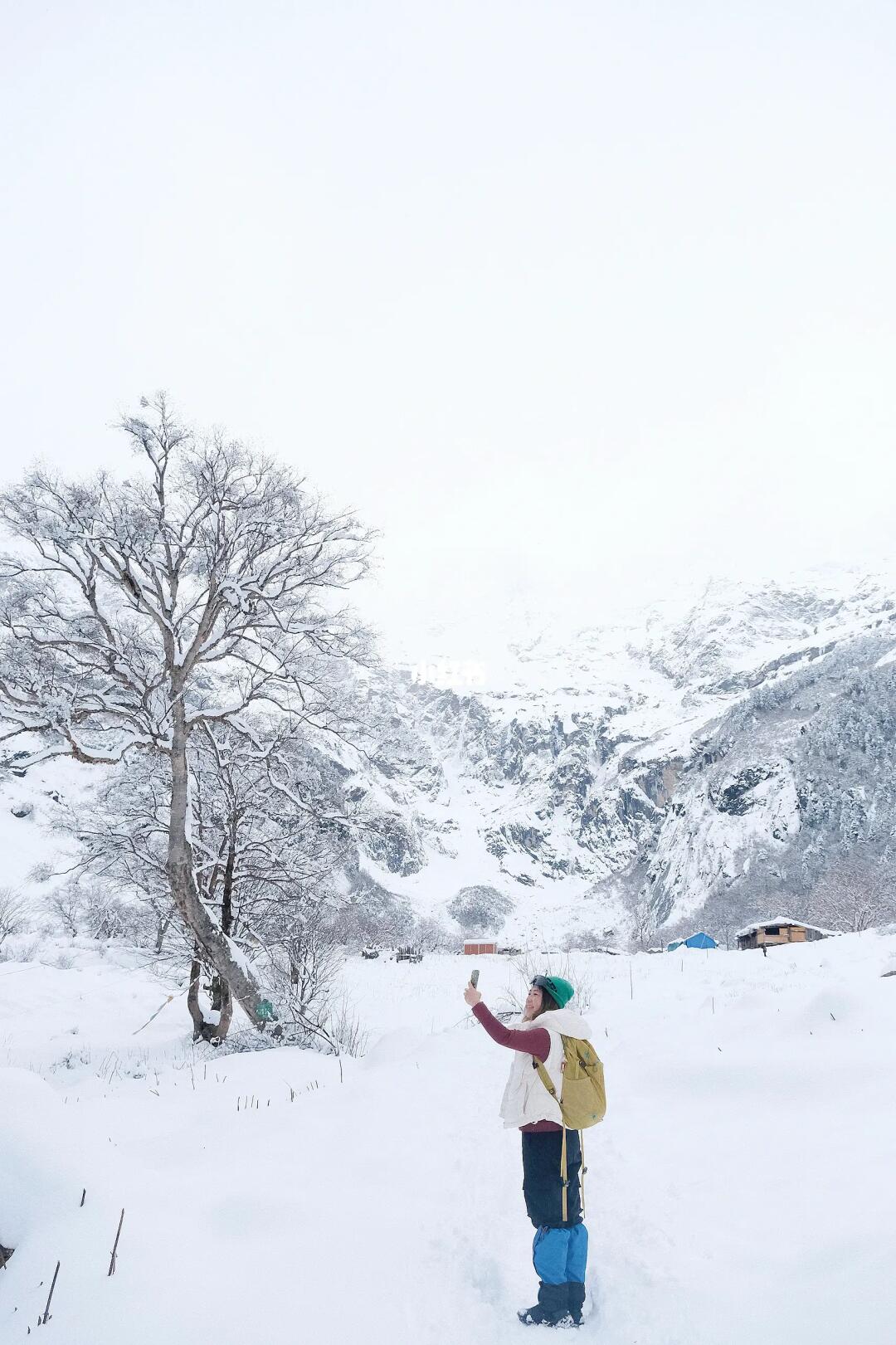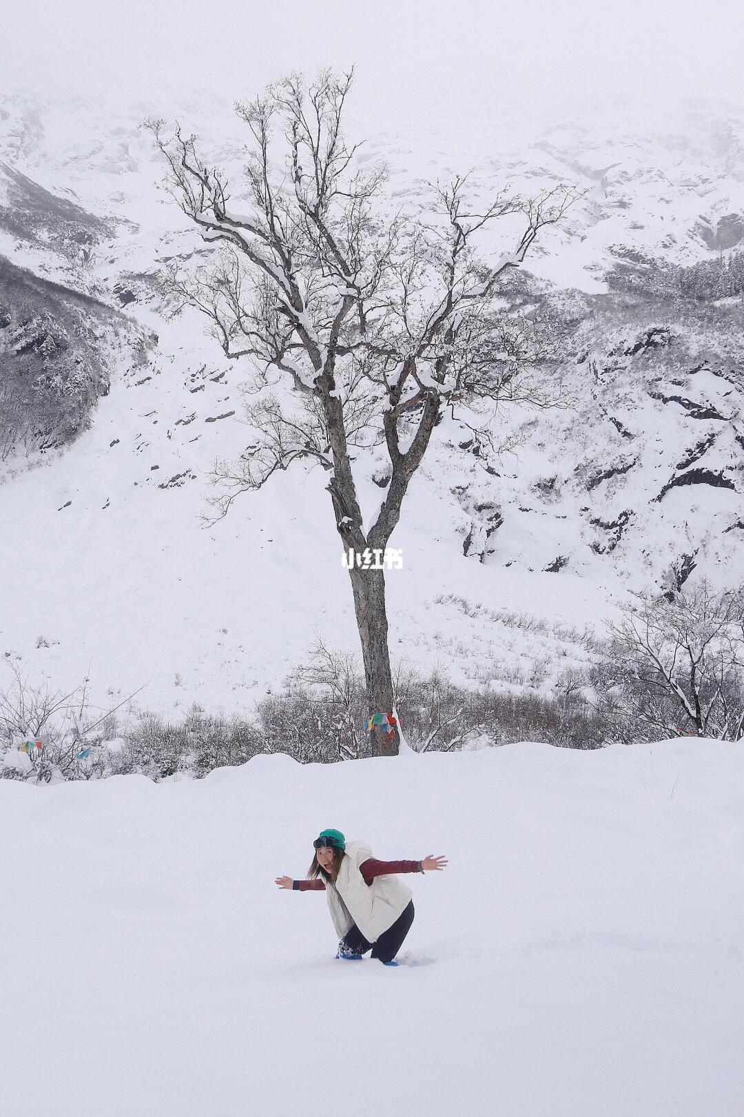 我跟老张2pm继续行走 ,雪也越来越厚,距离神瀑1.33km的时候,雪淹没过大腿,我心想卡瓦格博的心事也太重了,忧思万物,神圣梅里