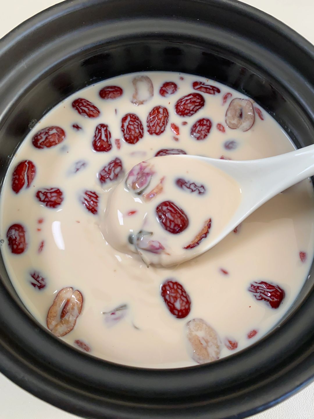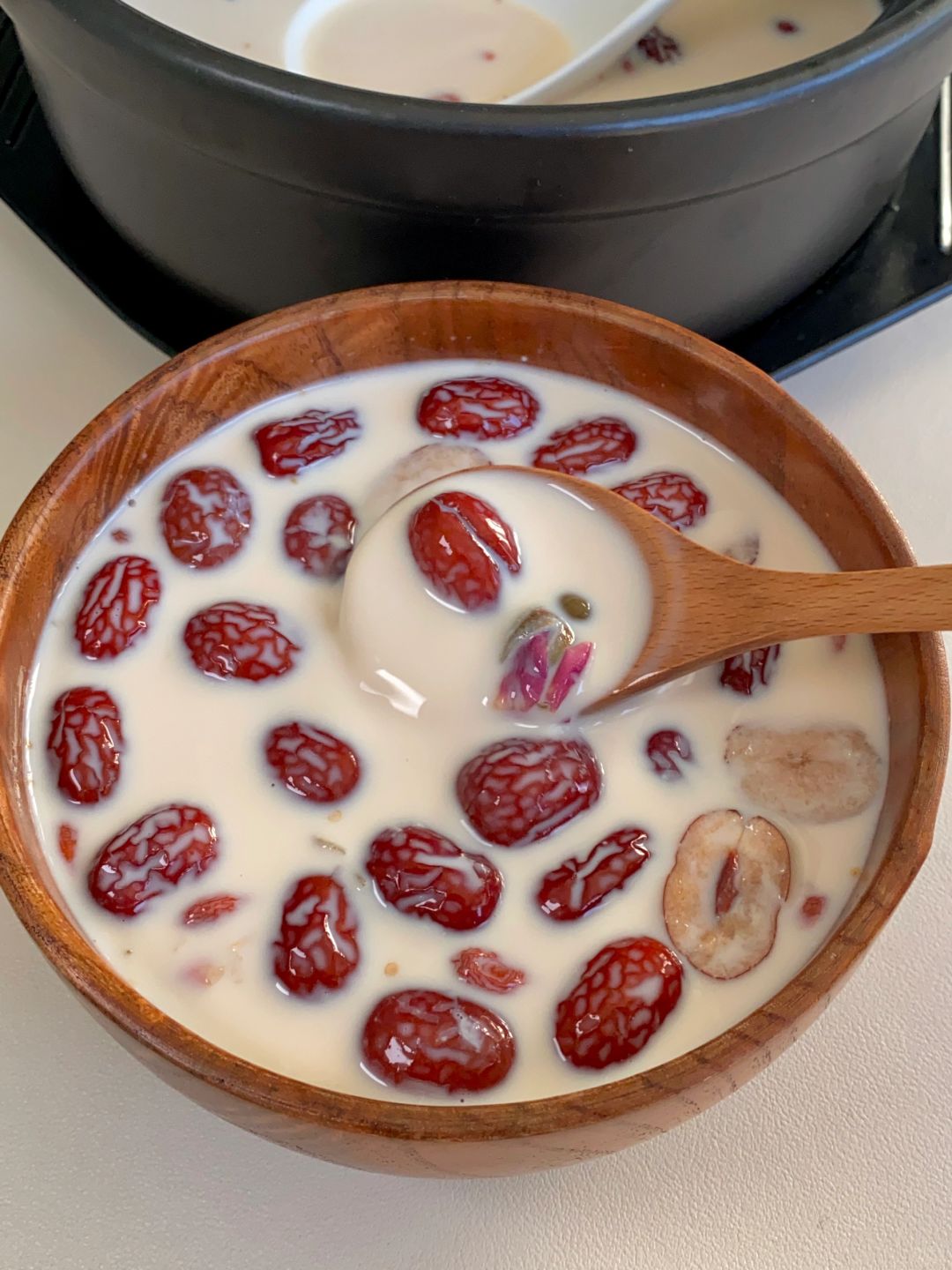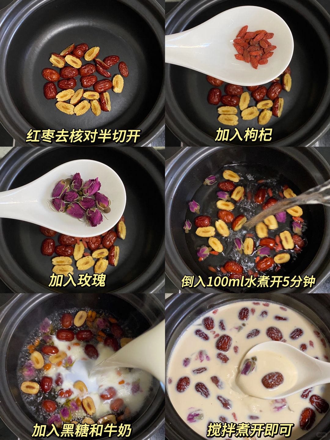 红枣牛奶茶!女生喝真的很好!!暖乎乎的 香甜的枣香,奶香贼浓郁!营养又健康!! 做法也简单!经常喝🧏🏻♀️红润润哒~ 📝红枣、枸杞、黑糖、玫瑰、牛奶 ✔️红枣去核对半切开,加入枸杞和玫瑰兑入100ml水煮开5分钟,再加入黑糖和牛奶搅拌煮开即可 都是些健康友好食材!搭配一起煮奶香醇厚啦!还有淡淡的玫瑰香,生理期来上一碗暖乎乎的贼舒服!整个人都元气满满~