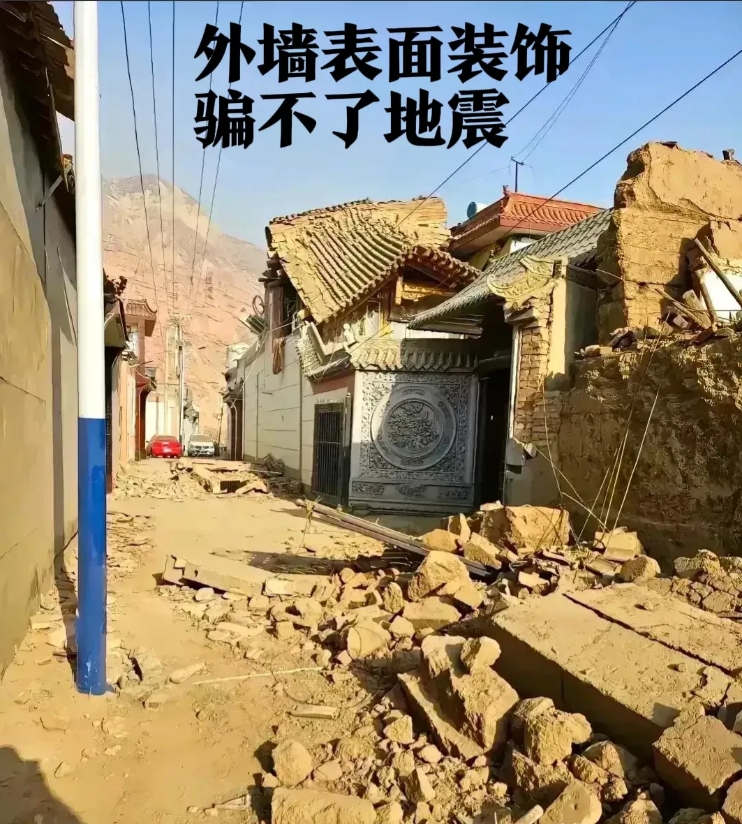 而且,土砖房还是比较难得的情况 更多的房子是“土坯房”, 只是表面装饰好看,但骗不了地震