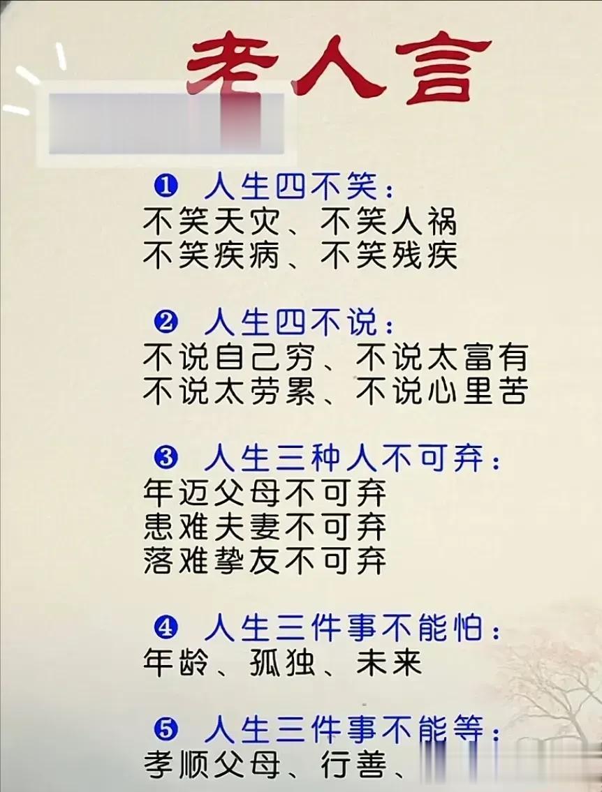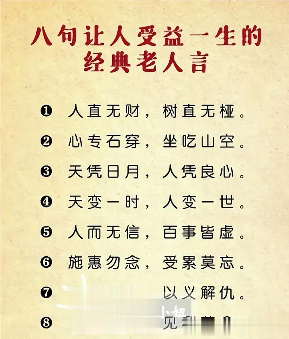 消失上百年的老人言,句句都是大智慧,通透有理。教你为人处世之道、生意经、夫妻相处之道、亲戚关系相处等等,读完之后,让人醍醐灌顶,受益一生! 比如: 莫学杨树半年绿,要学松柏万年青。 一言能惹塌天祸,话不三思休出口。 真话一句值千金,谎话千句如粪土。 心专才能绣出花,心静才能织得麻。 屋怕不稳,人怕忘本。 恶言伤人,假话害人。 老实常顺,吹牛常败。 让人一寸,得理一尺。 口角言语,贤不责愚。 速效莫求,小利莫争。 人直无财,树直无桠。 心专石穿,坐吃山空。 天凭日月,人凭良心。 天变一时,人变一世。 人而无信,百事皆虚。 施惠勿念,受累莫忘。 以直报怨,以义解仇。 …… ——《老人言》,国学经典,日常阅读,积攒人生智慧,从中发现生活的真谛。没事让孩子背一背,既能增加知识积累,还能开拓眼界,提升品行修养与交际处世,未来能少走弯路。 老人言中华谚语格言