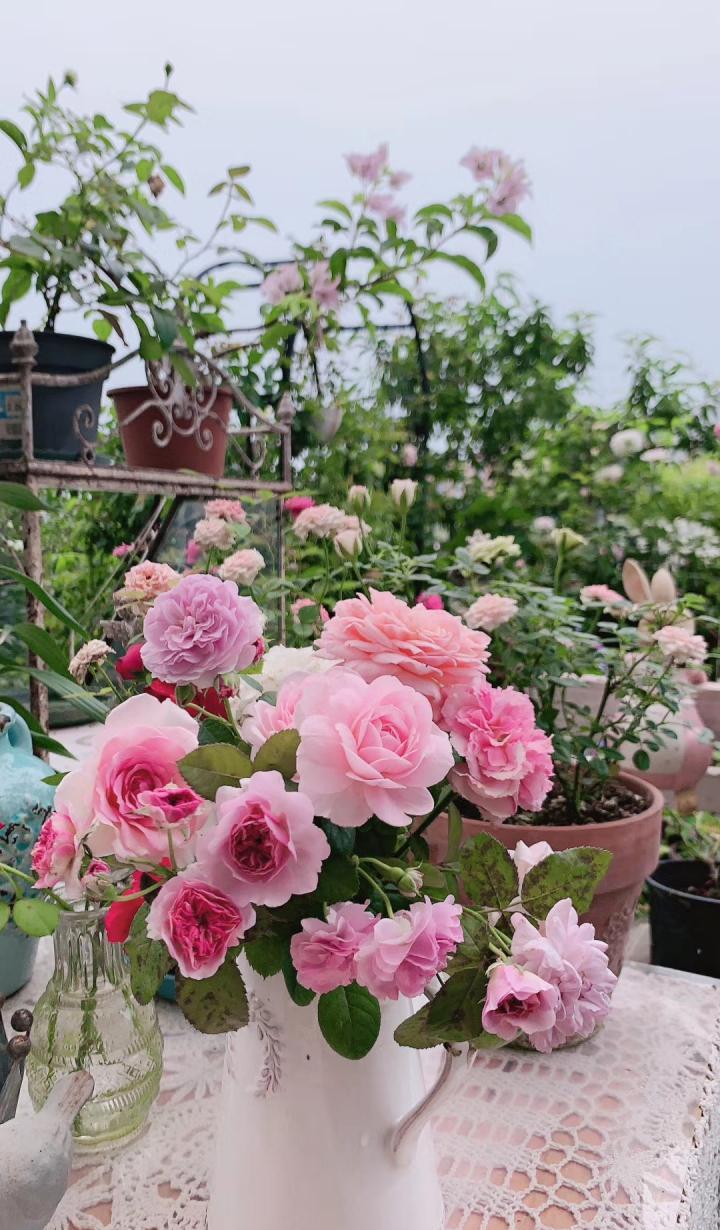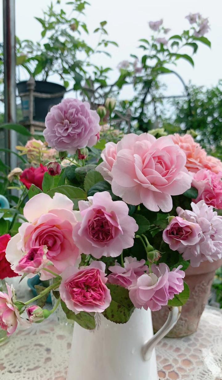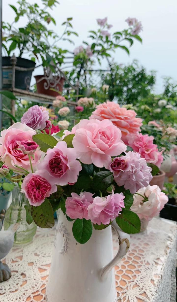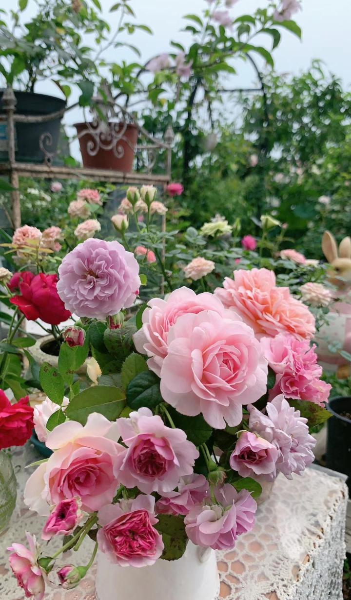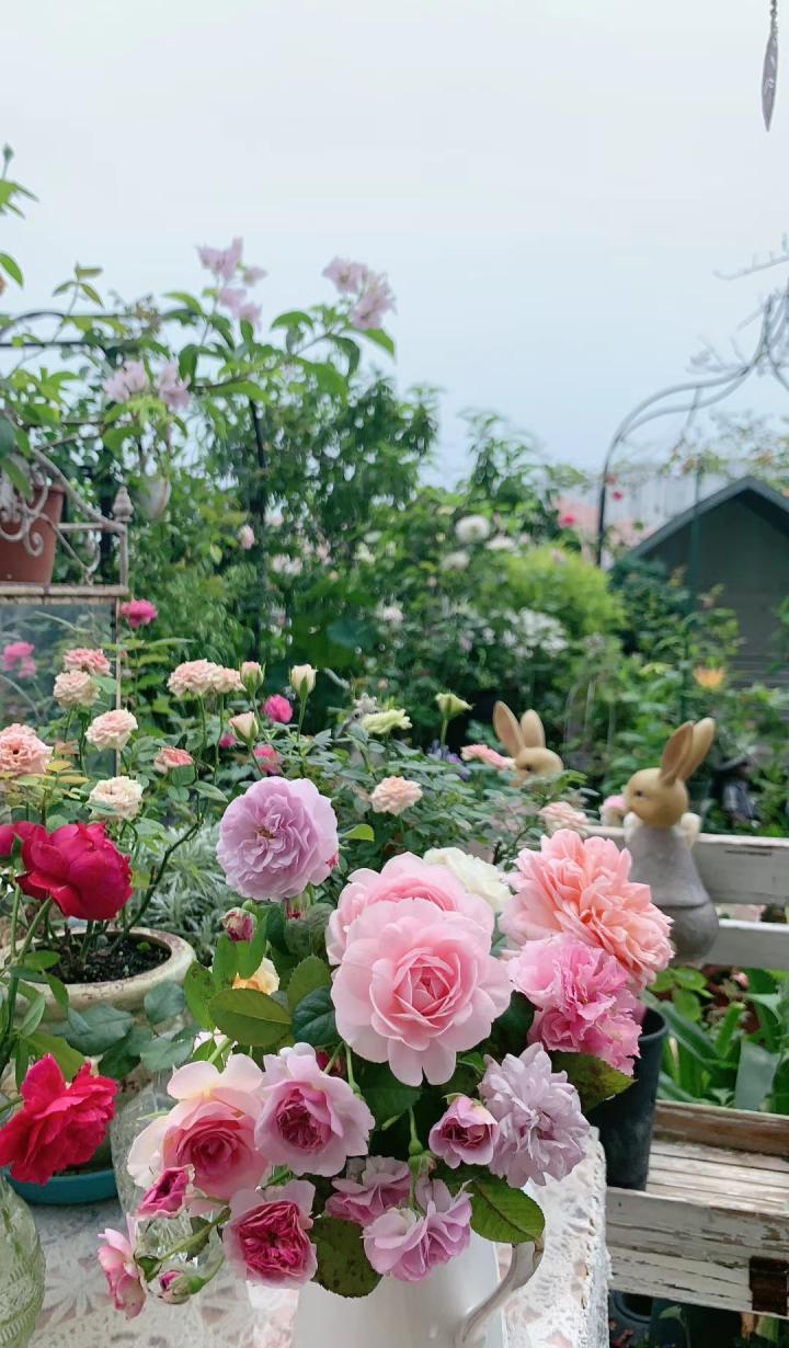 月季第二波:薰衣草花环,奶龙,果汁,金丝雀都很不错,藤月都窜好高,小清新的百子莲