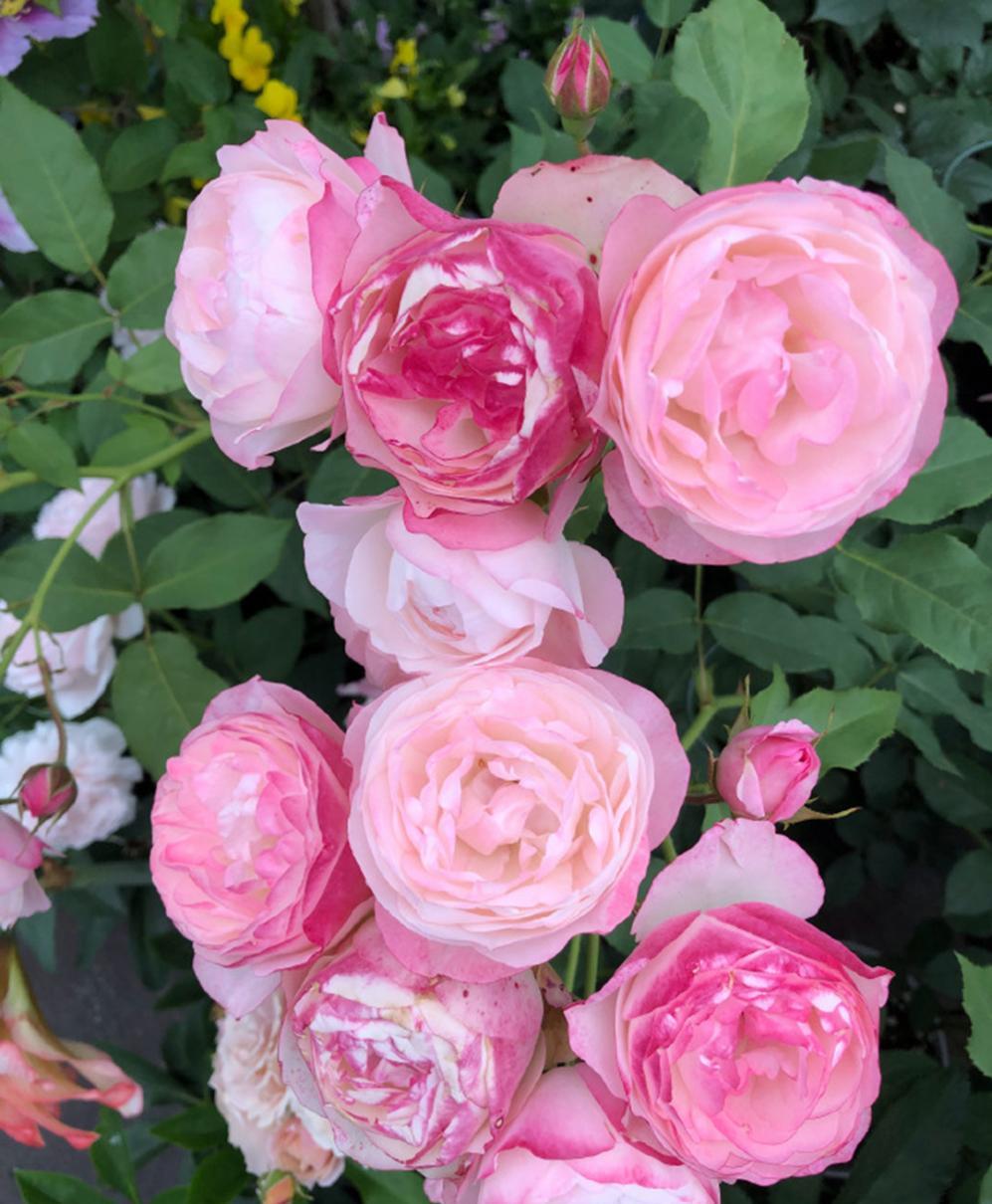 超级粉嫩的草莓色,圆圆的小包子花型,远看特别像一个一个马卡龙挂在枝头。草莓杏仁饼还是个非常新手友好的品种,长势好,抗病佳,还是个特别能开的主哟~