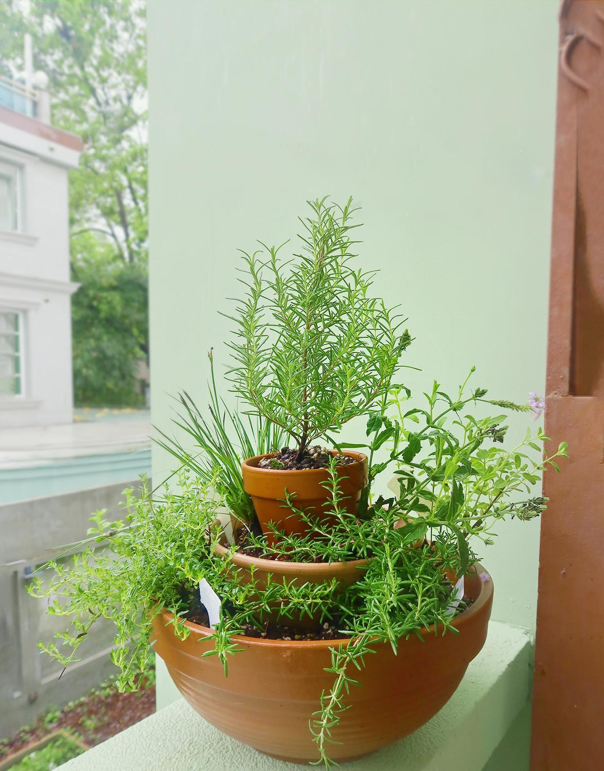 厨房可种,迷你香草组合盆栽家里做菜,香草配料买回来,往往一次只用一点,多余的可能会放坏浪费掉。自己在厨房种一盆组合香菜,就非常适用啦! 向大家分享迷你香草盆栽,三层花盆,种类多样,这样每次都能吃到新鲜的香草啦。 1.尽量选择宽口的花盆,上下两个花盆的直径差可以大一点,尽量给底盆多留一点种植空间。 2.底盆和中盆之间用一个小花盆垫起,就不用担心一段时间后土会沉降影响造型。 3.定好位置后,可以先在下边的盆里做完移植,再把上面的盆放上去。 4.根据植物的习性,安排上下种植品种结构。 5.记得做标签,因为混种的香草品种较多,过段时间就可能会忘记的。 最近气温回升,家里的蒜头、土豆很容易发芽,可以考虑种在厨房呀~