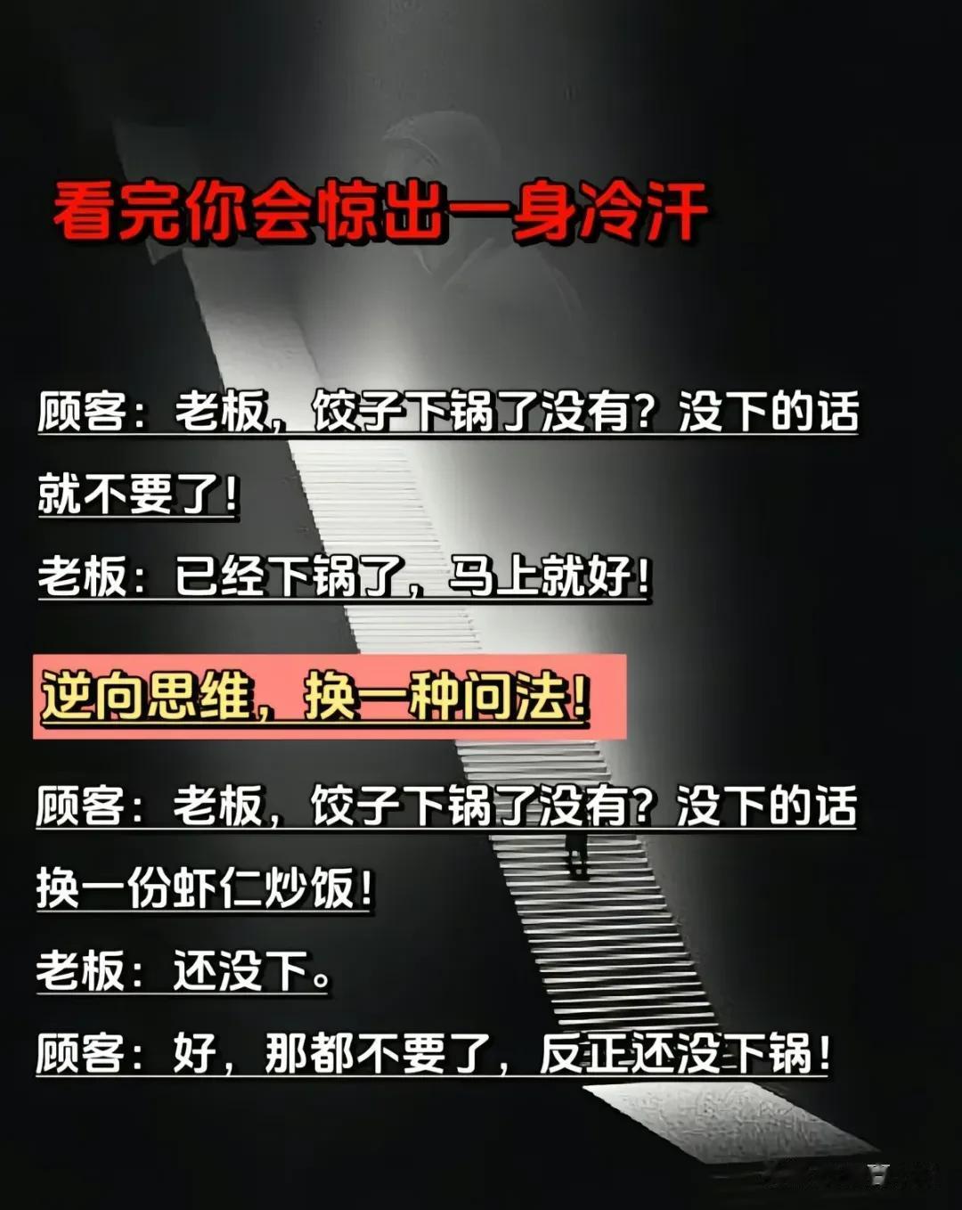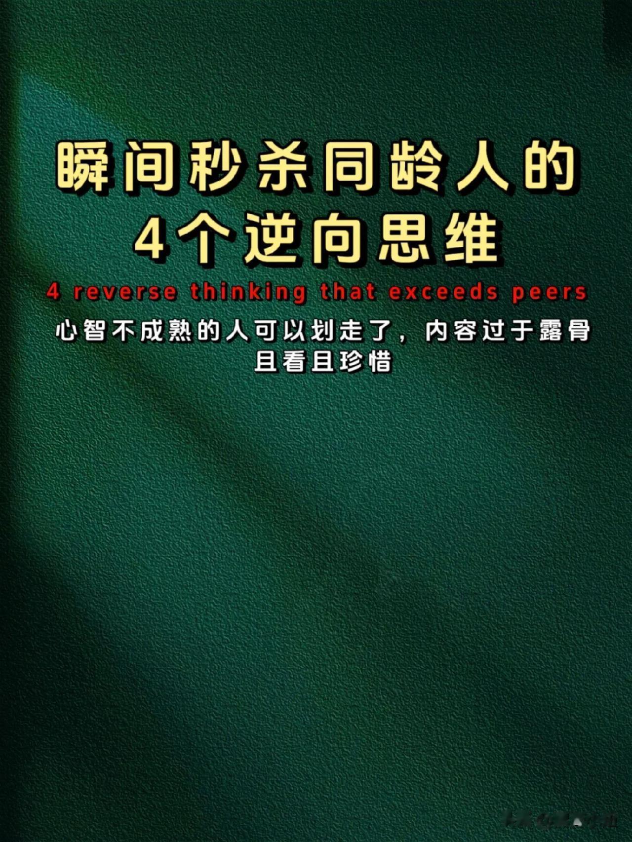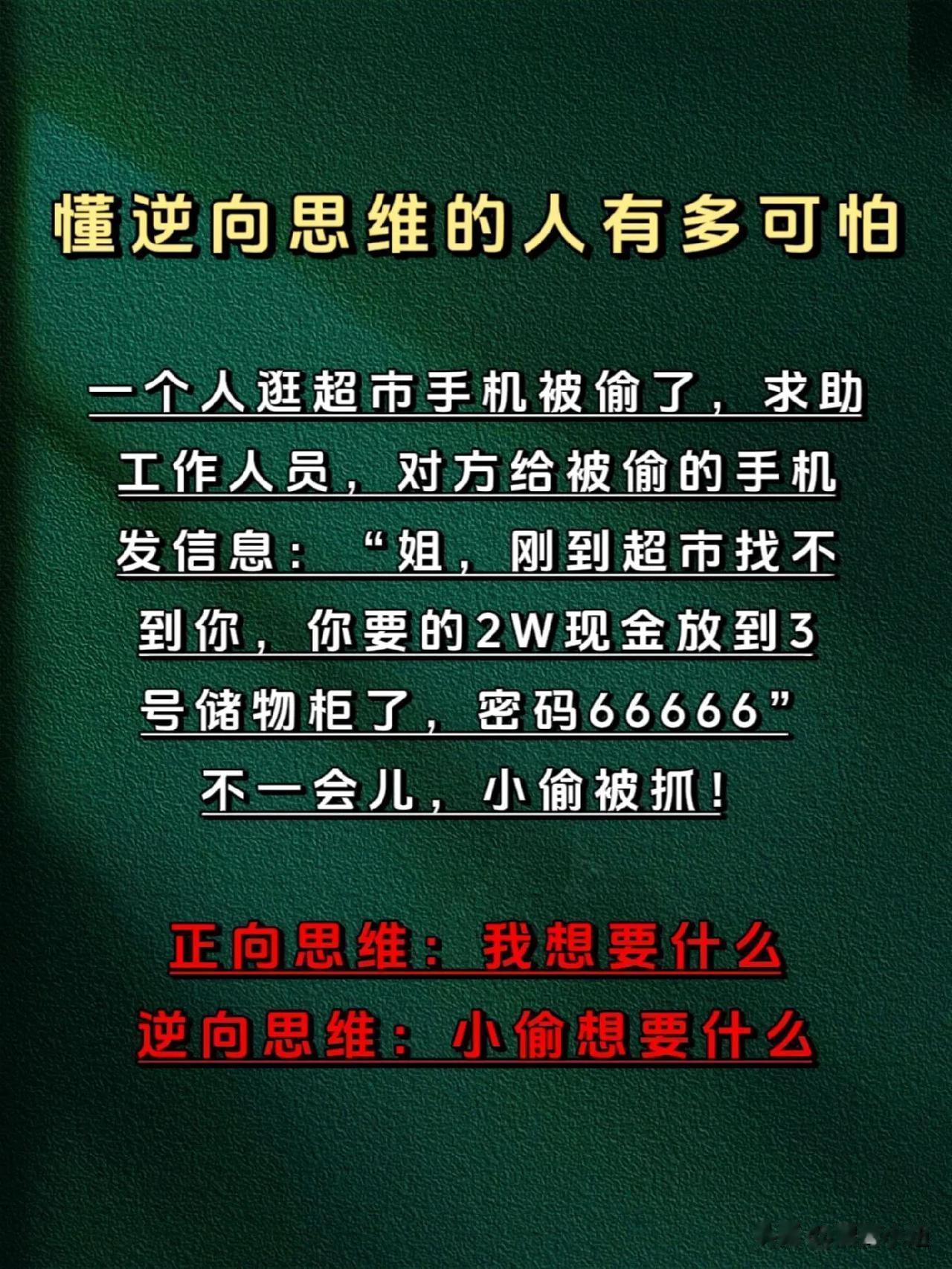 “太牛了!”这是我见过最厉害的思维方式!难怪经常有人说:你永远玩不过一个会逆向思维的人,原来拥有逆向思维的人,在遇到常人难以逾越的困难时,他们也能轻松化解,比平常人更容易站上顶端。 掌握逆向思维,可以让我们在面对困境时从容应对,化繁为简,变被动为主动,甚至将不可能变成可能!赶紧学起来! 这不是教你坑人害人,偷奸耍滑,更不是教你钻牛角尖,而是教你一种思维方法,让你在困境中能巧妙的把劣势变成优势,让你从被动变成主动,让你更容易获得成功! 逆向思维是一种心理学,更是人生的智慧,在这个到处都有尔虞我诈的世上,如果你不懂逆向思维,就只能处处受人欺负,就只能留在底层挣扎,就只能过朝九晚五的生活! 这不是危言耸听,而是残酷的现实,在这个充满竞争的世上,如果你仍然按部就班,循规蹈矩,就只能跟在别人后边摇尾乞怜,就只能在底层苦苦挣扎,就只能四处碰壁被人欺负。 只有当你改变思维方式,学会运用逆向思维的时候,你才能在困境中破局,才能改变自己的命运! 逆转思维训练逻辑法则