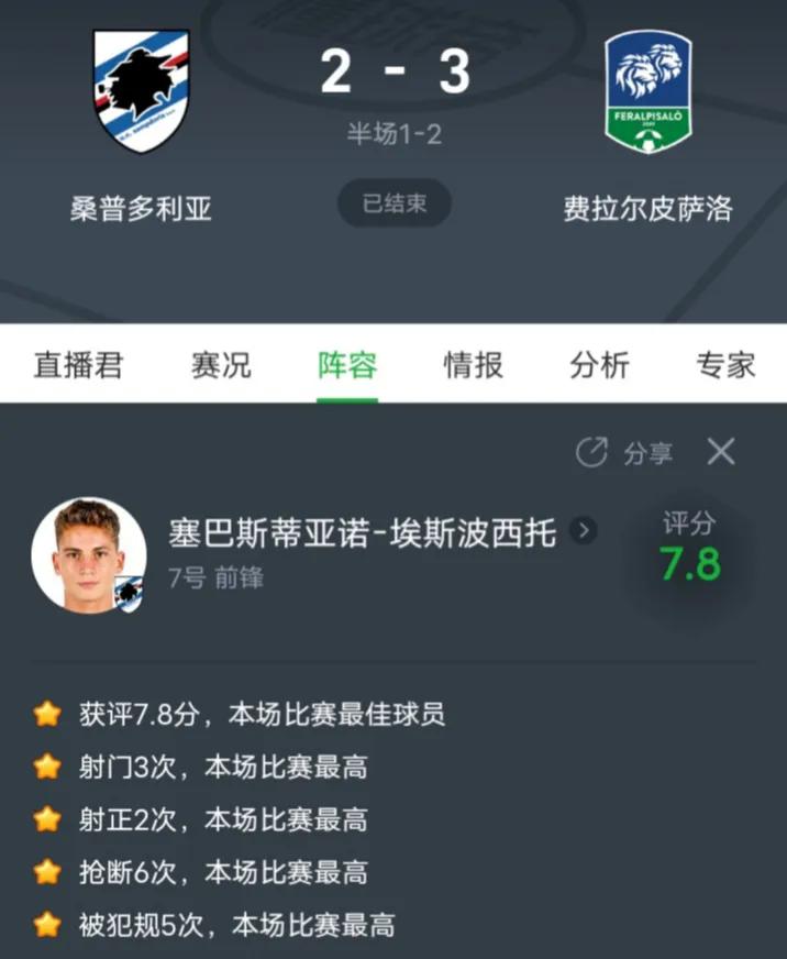 🇮🇹意大利足球🇮🇹 6轮4球1助,本轮最后时刻打入精彩一球,可惜被吹掉,