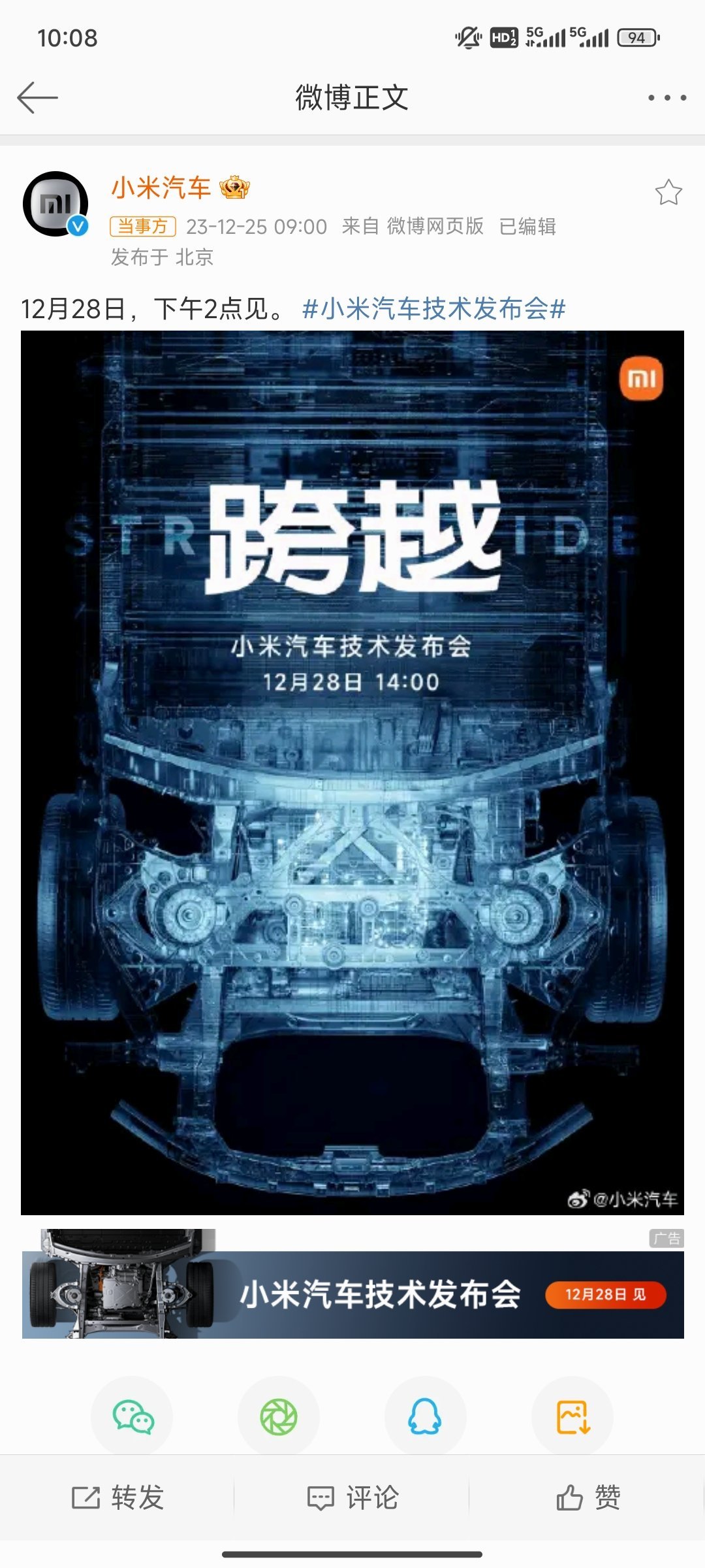 #小米官宣汽车发布会#小米汽车官宣了,12月28日发布!
