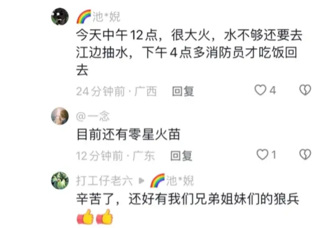 据知情人透露,大火发生在中午12点左右,直到下午4点,大火才基本被扑灭,消防战士奋战了整整4个小时。