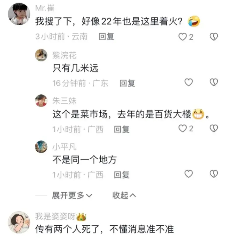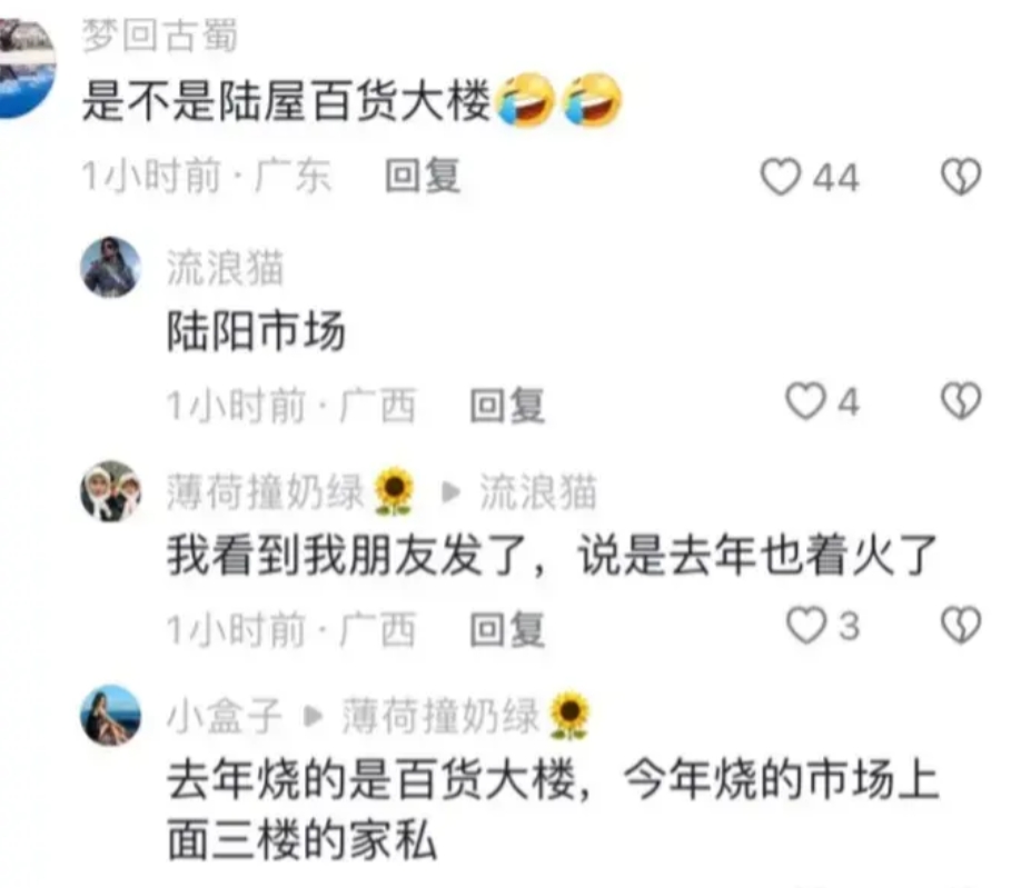 据悉,此处发生火灾不是第一次,就在去年,陆阳市场就发生过一场火灾事故,只是那次是百货大楼,这次是三楼家私市场,二者仅隔数米。
