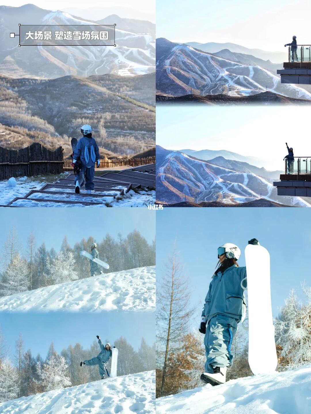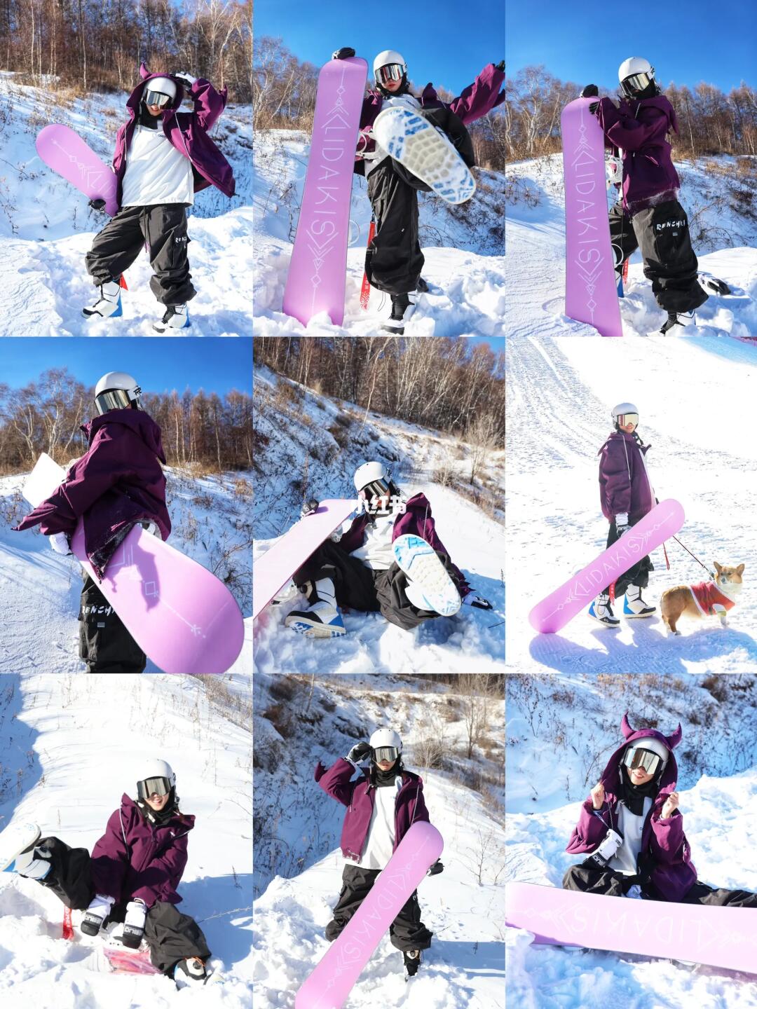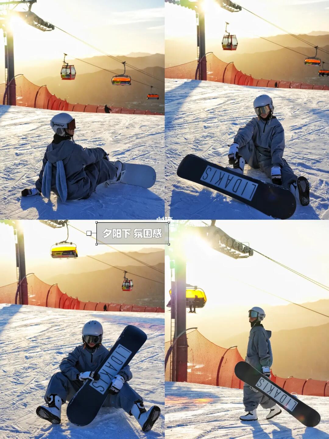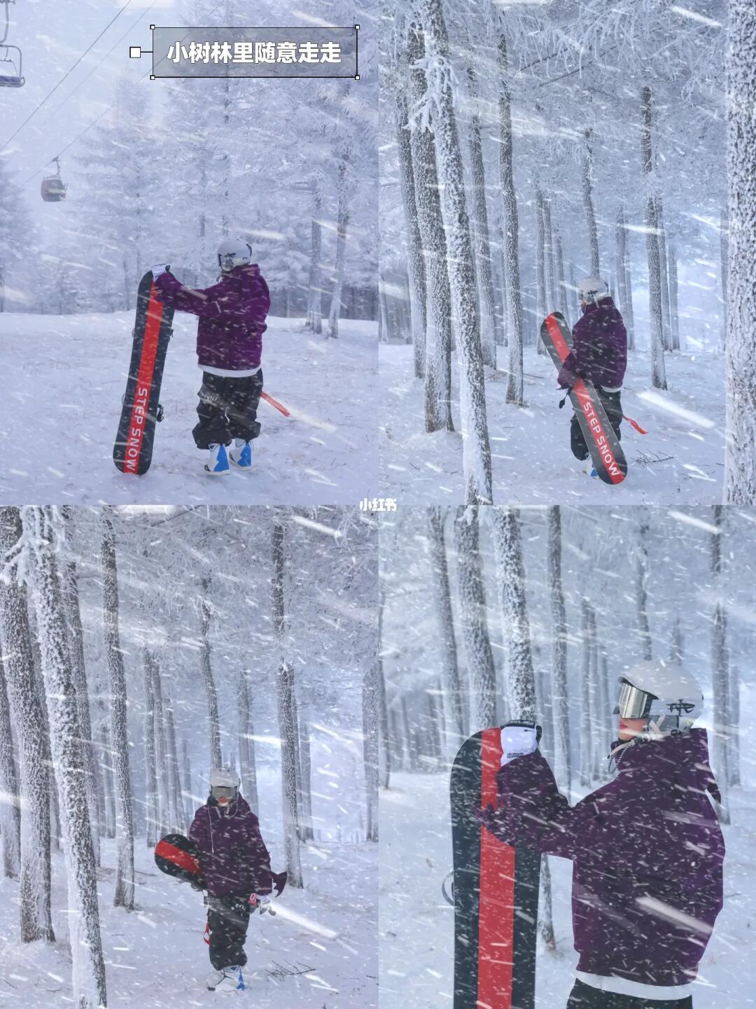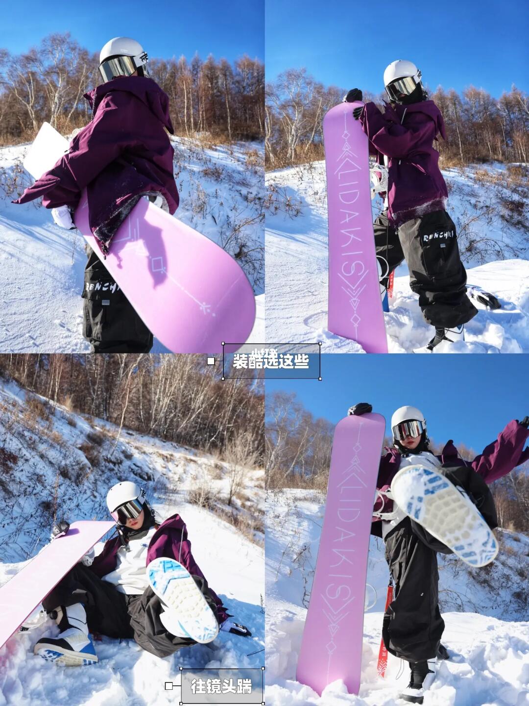选择单色的雪服(紫色 蓝色 黄色等都很出片)
