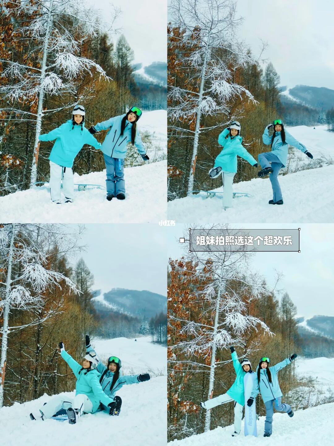 🟣表情:滑雪还需要什么表情管理,头盔雪镜一带谁都不爱,想拍照好看可以冷帽外面套雪镜,但滑雪要戴头盔注意安全哦