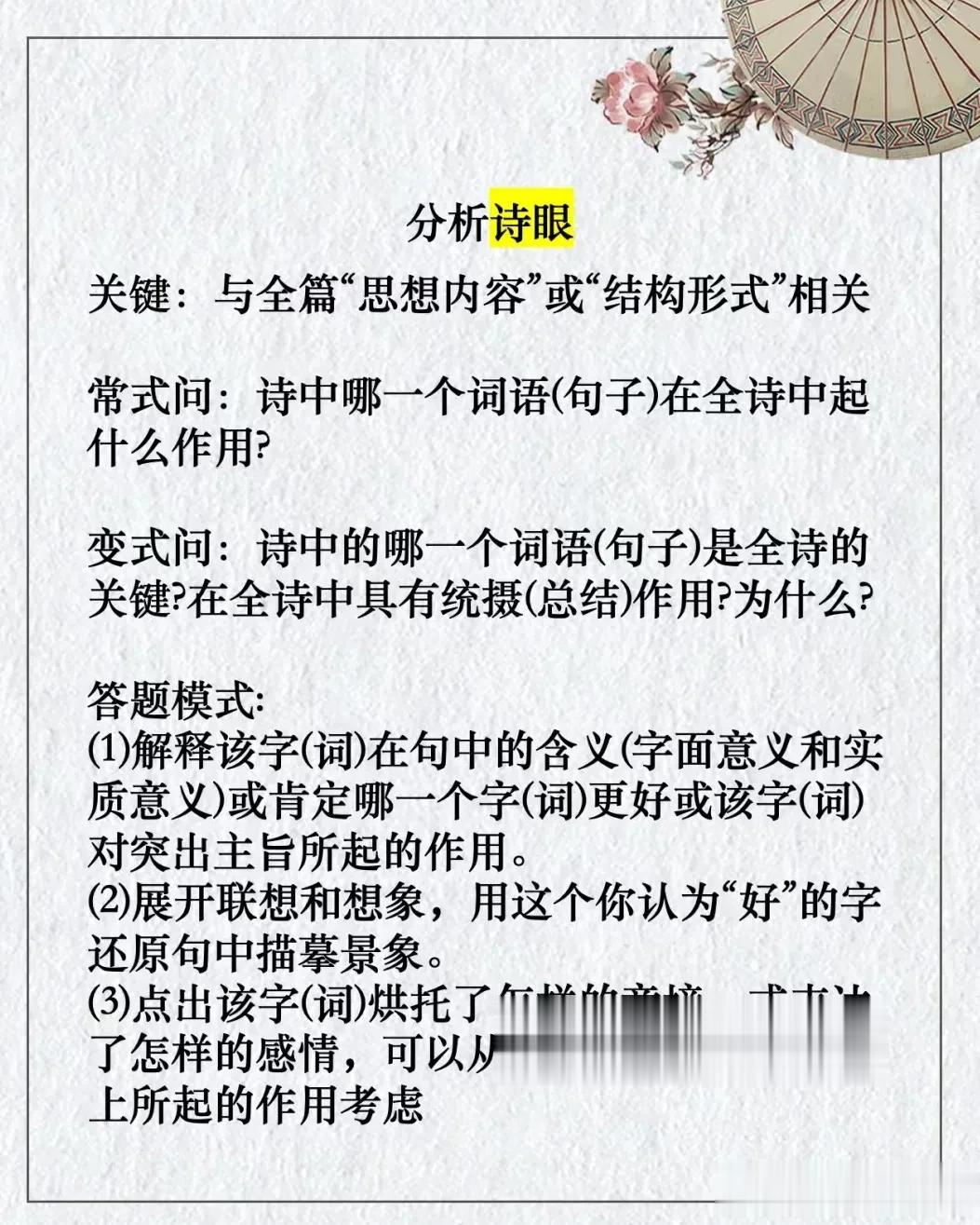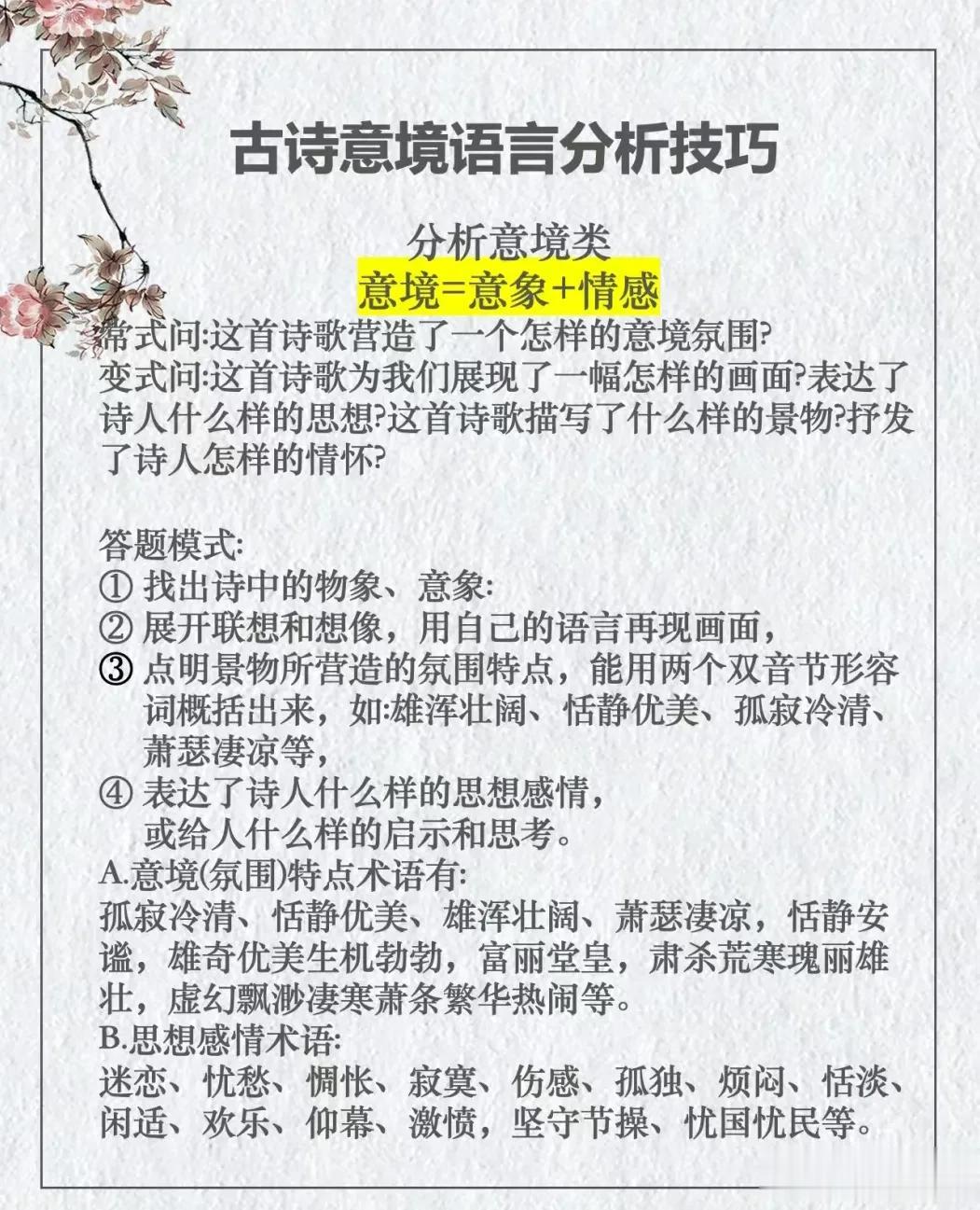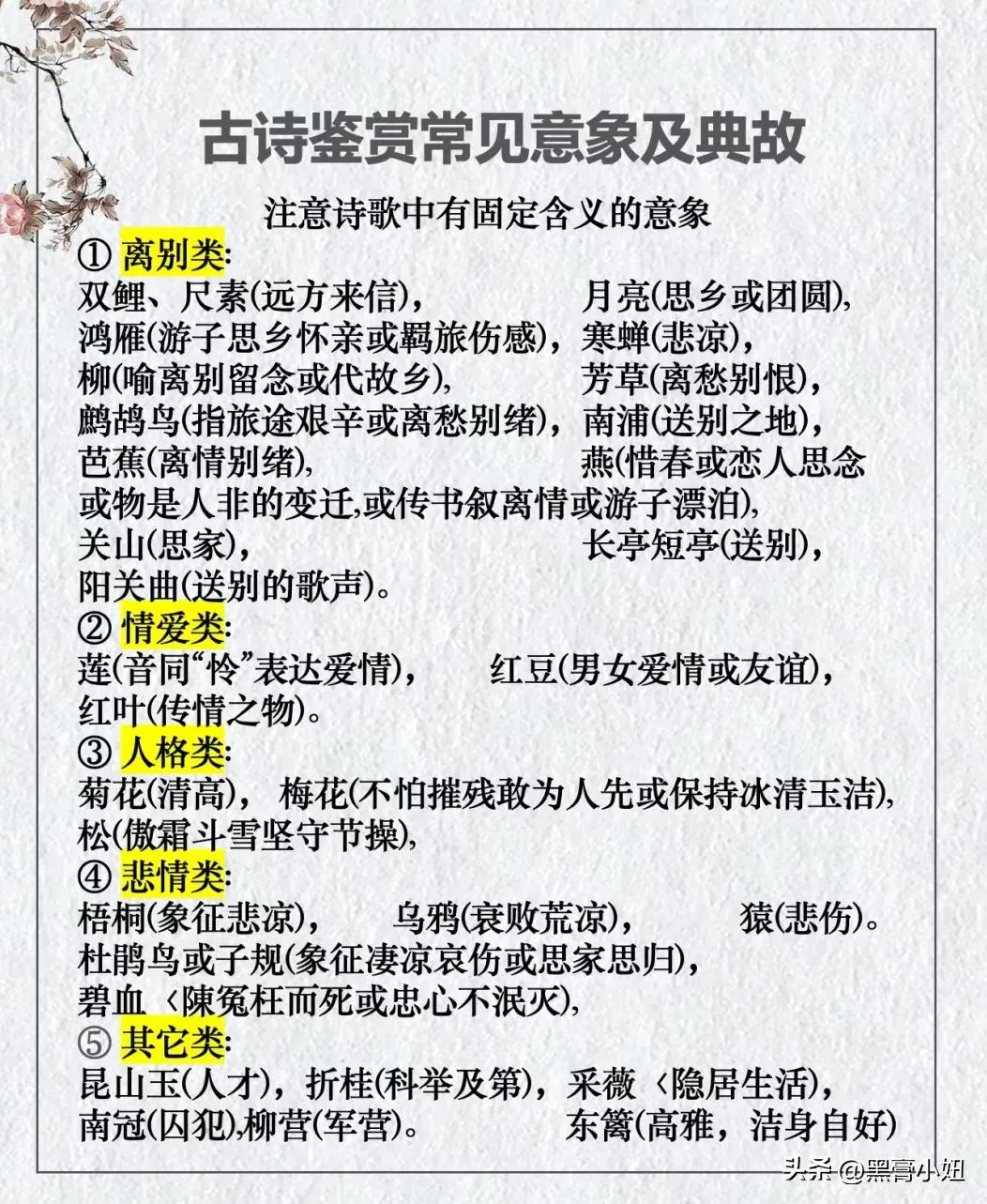 天呐!第一次见到这么全的古诗和文言文答题技巧,不愧是高手,教你如何读懂文言文,涵盖古诗鉴赏常见意象及典故、古诗意境语言分析技巧,以及文言文常用句型及虚词!背下来,语文就厉害了!家有孩子的赶紧收藏!每天记一记,初高中成绩都不发愁了,稳稳的110+! 初中文言文阅读公式法