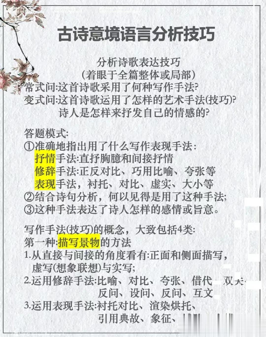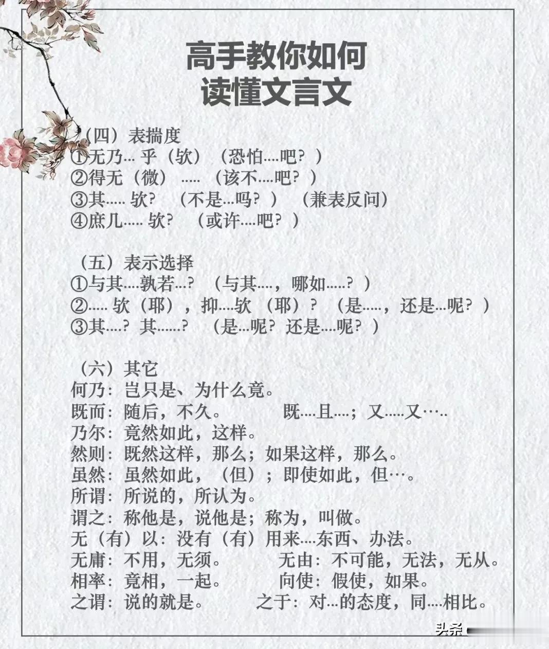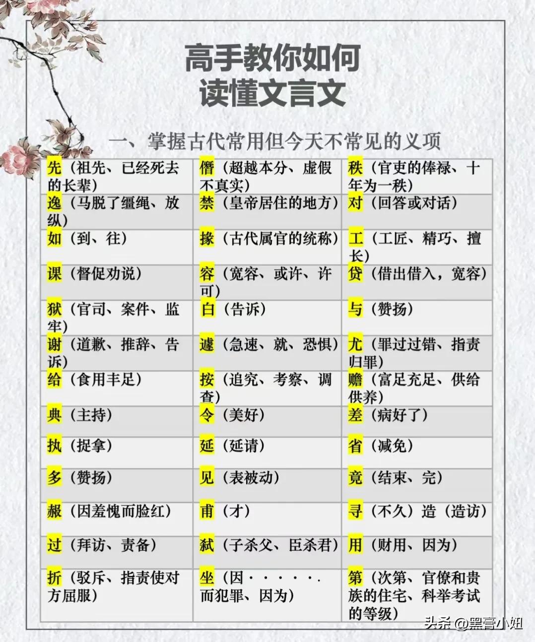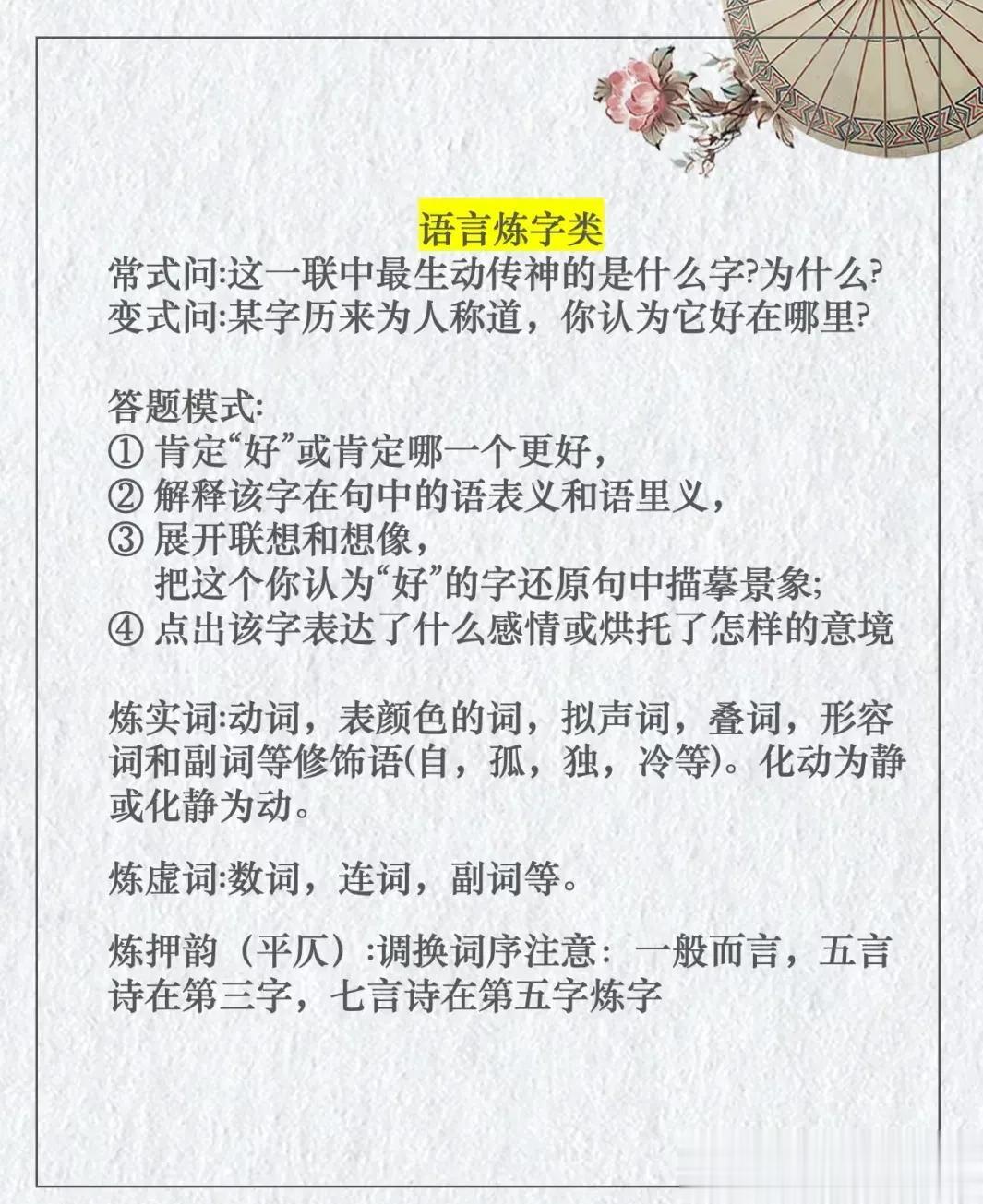 天呐!第一次见到这么全的古诗和文言文答题技巧,不愧是高手,教你如何读懂文言文,涵盖古诗鉴赏常见意象及典故、古诗意境语言分析技巧,以及文言文常用句型及虚词!背下来,语文就厉害了!家有孩子的赶紧收藏!每天记一记,初高中成绩都不发愁了,稳稳的110+! 初中文言文阅读公式法