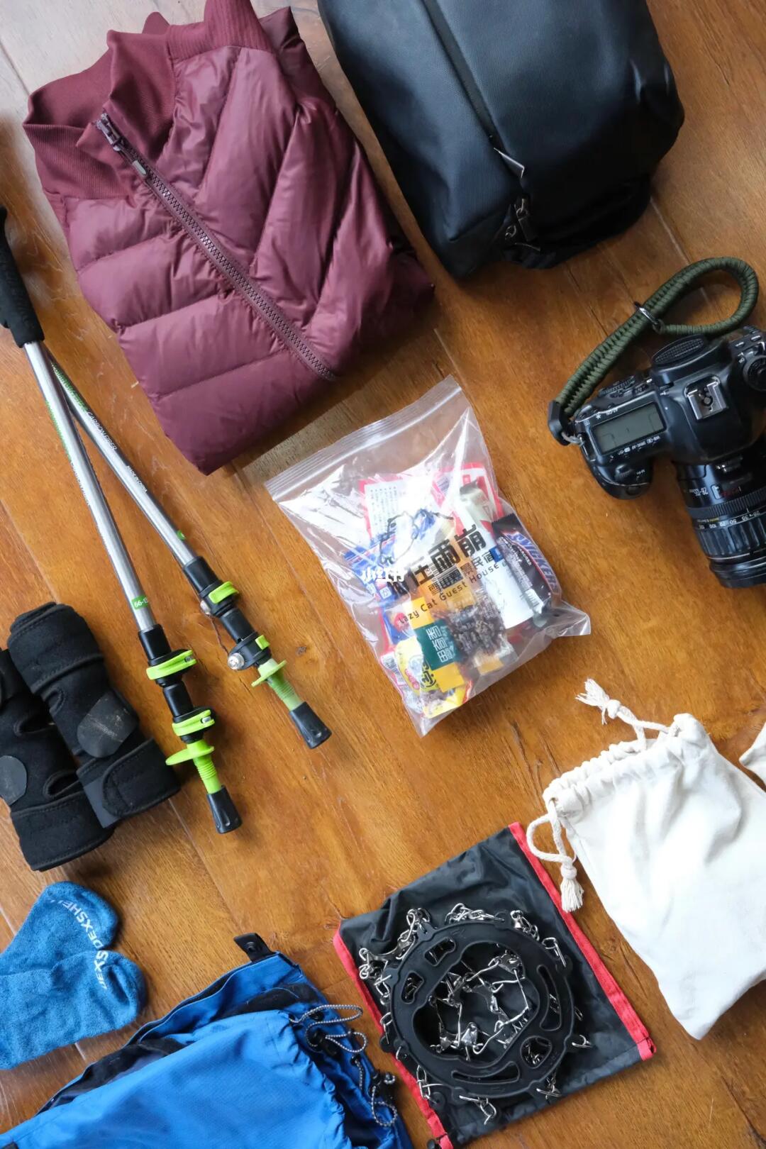 ●背包两个:45L大徒步包➕18L单日包,大包全程用背行李等等乱七八糟,徒步包只背徒步当天需要的物资。