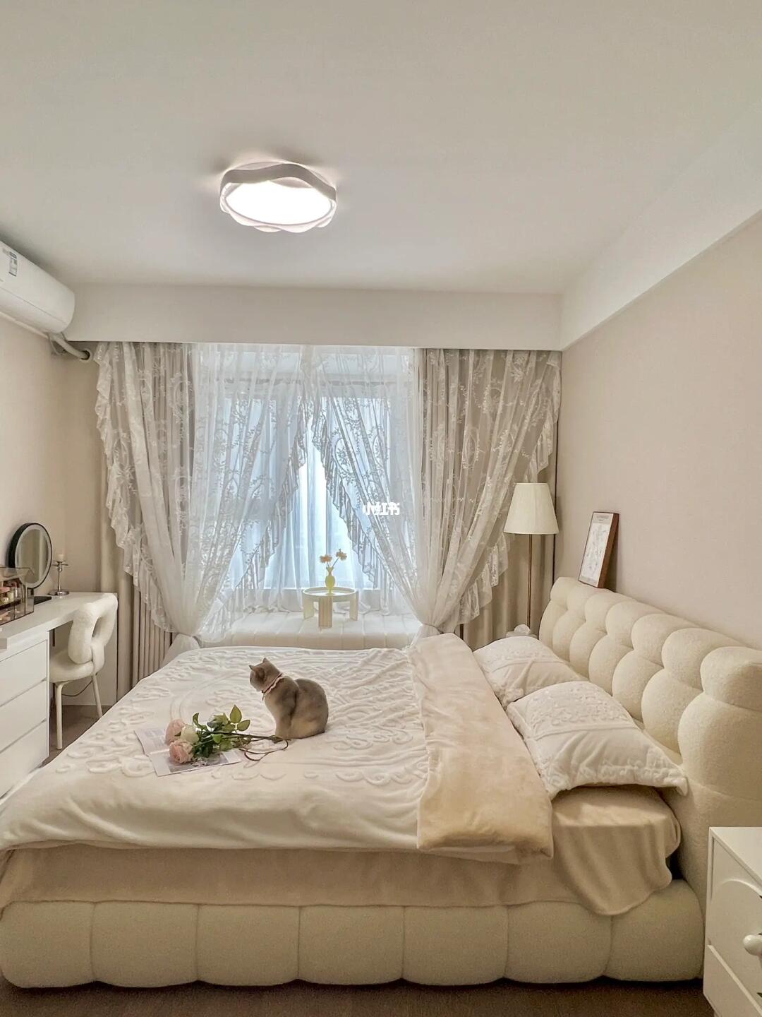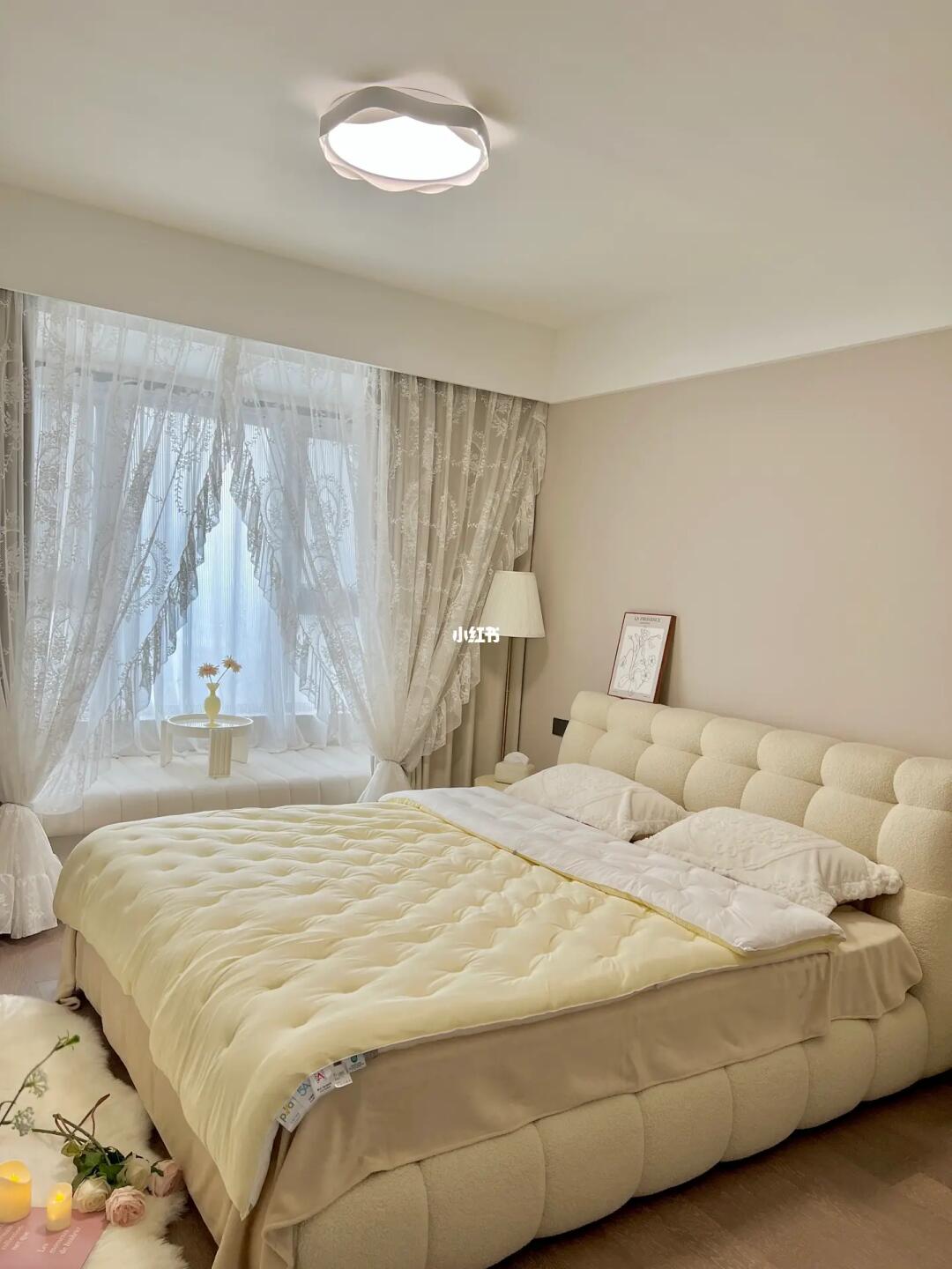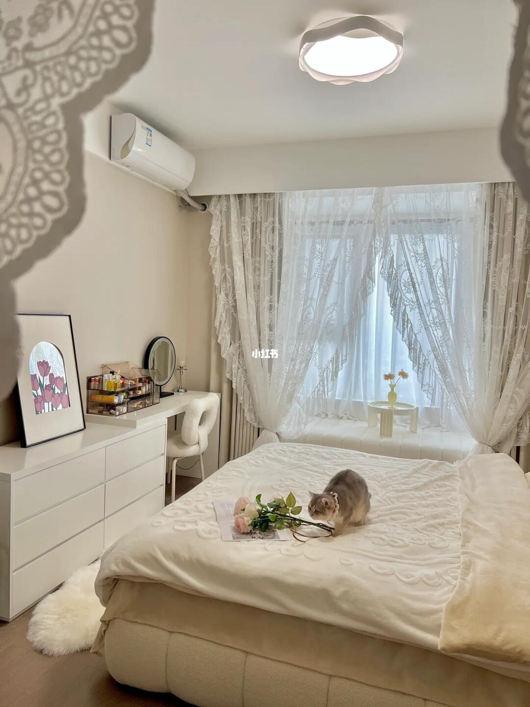 我的奶油卧室真的太好宅啦~ 虽然面积不大,但应有尽有 奶油色的床搭配软乎乎四件套 配上花边吸顶灯温柔又浪漫💕 和我的小猫一起窝在被窝里🐈 懒洋洋的太阳晒到飘窗垫上 暖呼呼的真的好舒服🫧 快乐到根本不想起‼️
