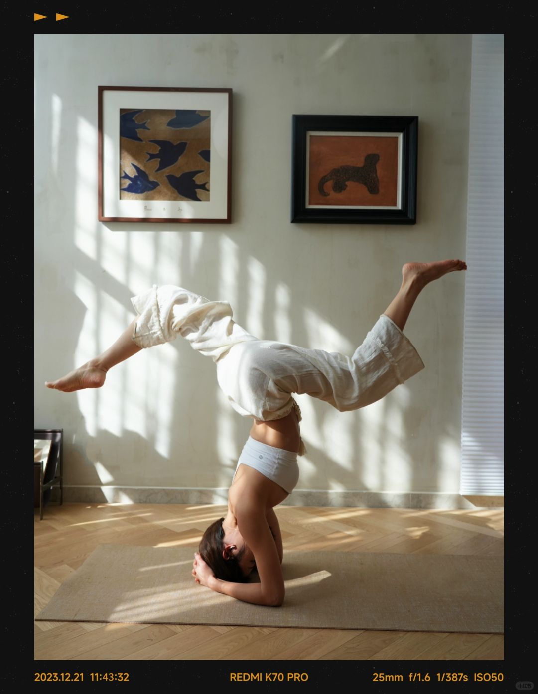 今年夏天才将高阶的手倒立、下巴倒立转肘倒立的练习提上日程。