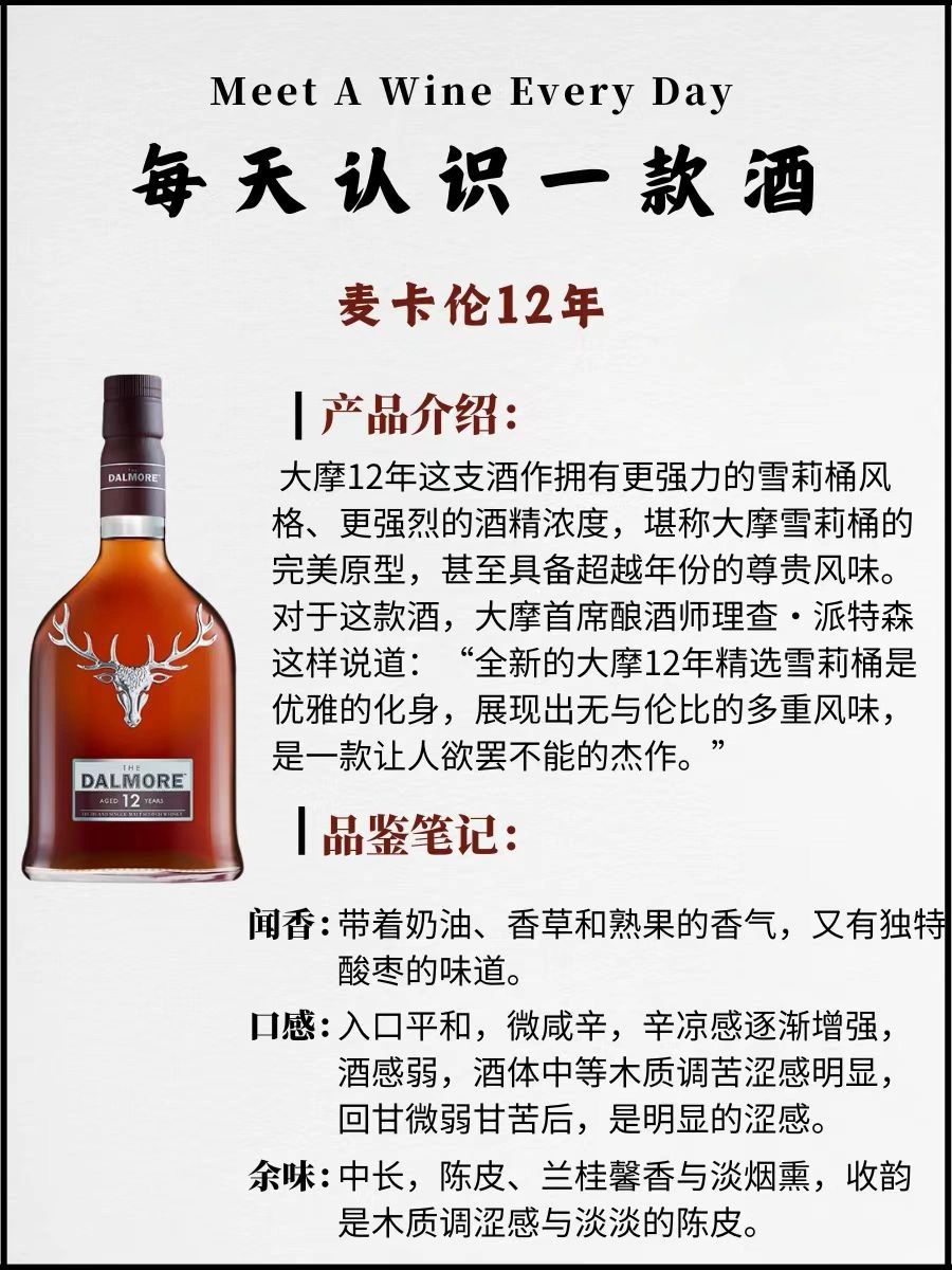 The Dalmore大摩酒厂由克兰·麦肯基成立于1839年,位于苏格兰高地产区。传说在公元年,克兰·麦肯基的祖先拯救了受困于雄鹿鹿角下的亚历山大三世。为表感谢,亚历山大三世授予鹿头徽章,辅以铭文“LuceoNon Uro”,意为“我照耀,却不燃烧”。在麦肯锡家族掌管酒厂时,将皇室徽章的“12叉鹿角的鹿首〞作为大摩的品牌象征。这象征着贵族王室,也纪念着这段英勇的过去,同时将这份荣耀分享给品尝大摩威士忌的消费者们。