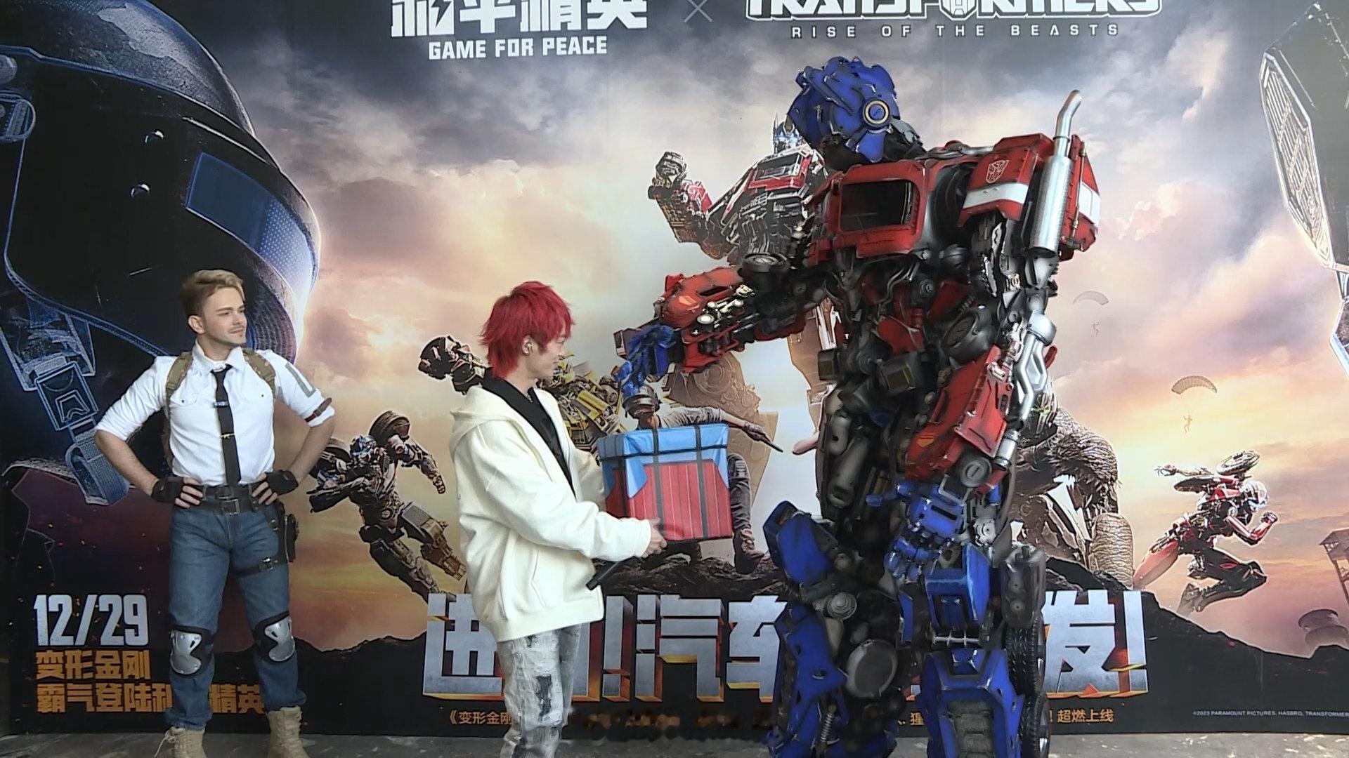 嘿嘿嘿,我看到了什么?!是和平精英和变形金刚的联动!!!线下有威震天可以互动~拜托~这超酷的!!