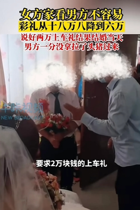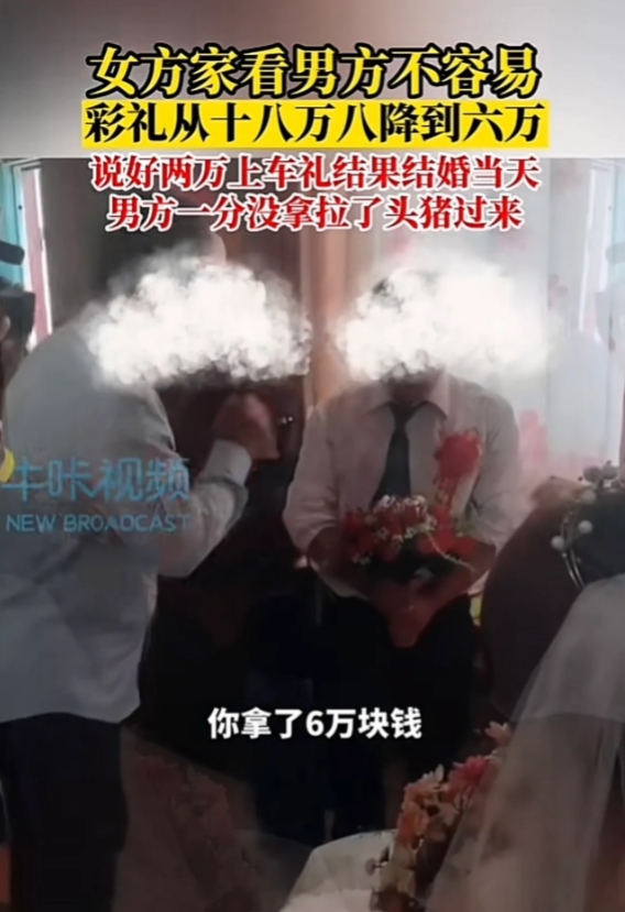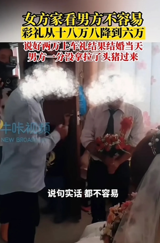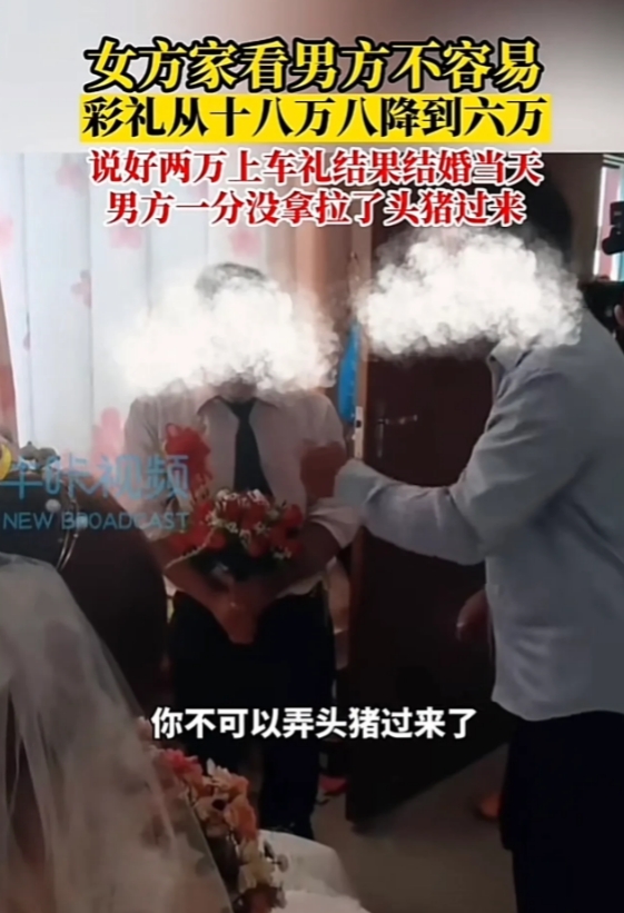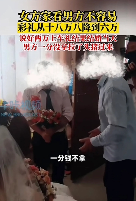“太缺德!”河南焦作,一男子举办婚礼,女方考虑男子家中困难,主动将彩礼从18.8万降到6万,又约定好上车礼再给2万。哪知道,结婚当天,新郎一分钱没拿,竟拉了头猪过来,岳父暴怒:一头猪就想换我女儿?
