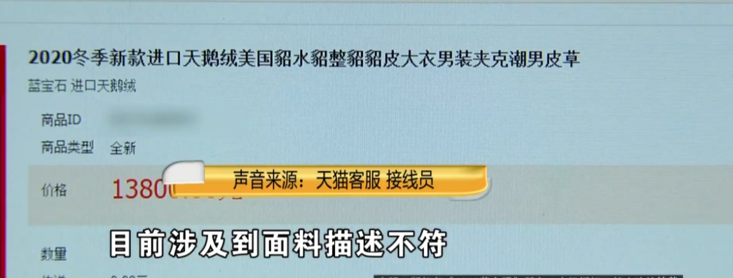 杨女士的这件进口貂皮大衣,是3年前在朱先生的网店购买的,当时大衣的信息备注写的是皮毛源自美国貂,标价6900元。