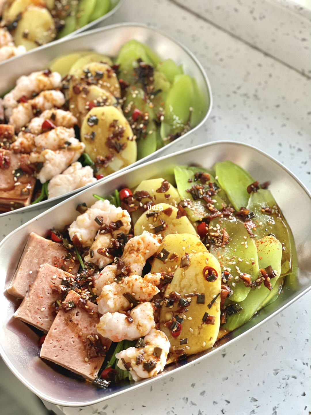5️⃣所有的食材烫熟后,浇上酱汁再撒一点辣椒面,简单快手的麻辣拌就做好咯😋