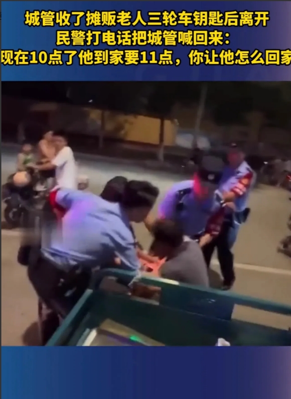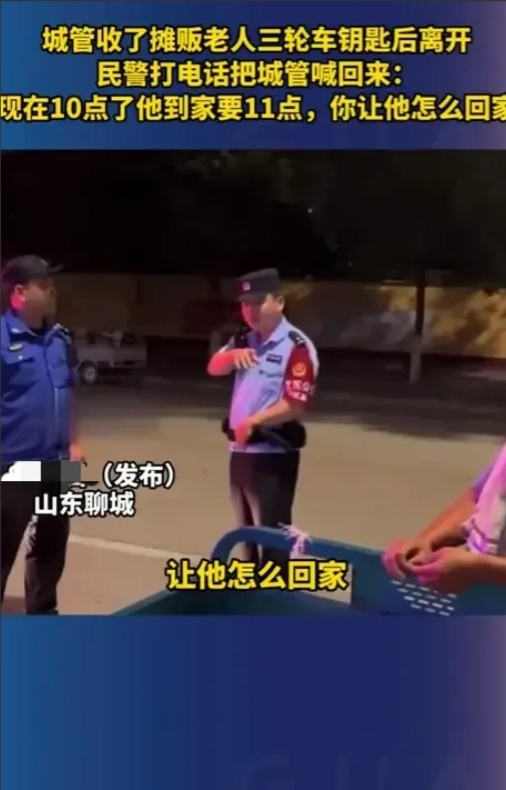 民警冷冷一笑,直接给城管的负责人打电话:"你让老人家半夜10点怎么回家?你在哪里?快把钥匙送过来!"