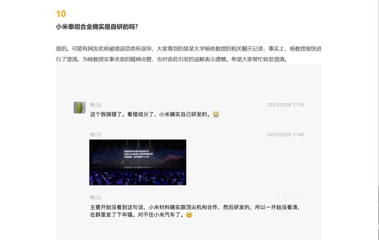 小米终于绷不住,针对近日以来的各种谣言,小米汽车整理了网友100个问题准备分三期