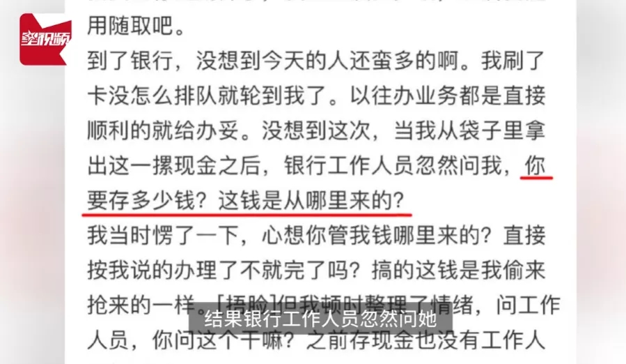 “规定个啥?我钱的来源,与你们何关!老百姓存个钱,还要面临你们审查,这是在侵犯我的隐私!”李娜气势不输柜员,手指敲着桌子,给银行上了堂普法课。