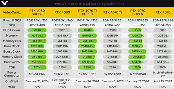 NVIDIA正式发布了RTX40SUPER系列升级版显卡,包括RTX407