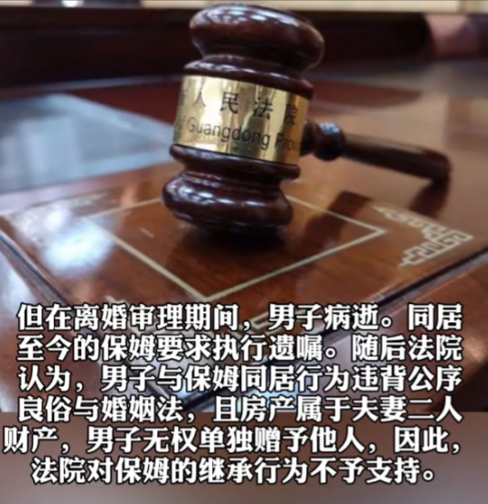 太炸裂了!深圳一男子,与妻子不和,不甘寂寞,与比自己小16岁的保姆发生了关系。此后俩人开启了长达17年的同居生活。男子病逝前,写下遗嘱,将3套价值4000万的房产全部留给保姆,妻子得知后要求保姆归还,没想到保姆却翻出了三十多年前妻子那件丑事儿,妻子忍无可忍,将保姆告上法院,法院的判决让人意想不到!