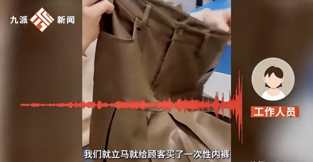 工作人员确认属实后,就将短裤收起了起来,并给陈女士提供一次性内裤,保证其人身安全。