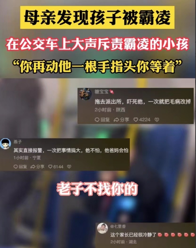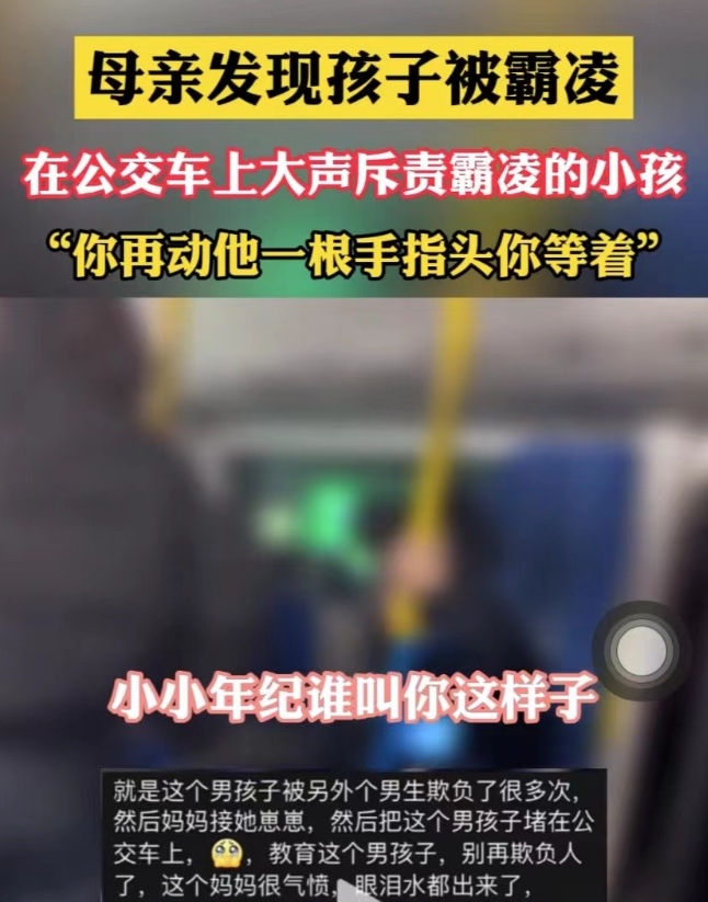 “再敢动他一下试试!”湖南津市,一孩子经常在学校遭遇校园暴力,身心受到严重影响,未曾想,一次孩子与母亲一同乘车时偶遇霸凌者,为此母亲主动上前呵斥霸凌者一番,言语字字诛心,一针见血。 (案例来源:中国网资讯) 罗女士居住于湖南津市,和丈夫共同育有一子,在夫妻两人的影响下,孩子心地善良,而且学习认真。 对于罗女士夫妻两人来说,孩子就是他们的天,宁愿让自己受苦,也不会让孩子在受一点委屈。 最近罗女士的心被深深刺痛,她的孩子屡次在学校里遭到同学们的欺负,每次回家总是能看到孩子脸上和身上有一些淤青。 这已经不是第一次发生了,孩子的脸上经常出现的淤青,无声地诉说着他所遭受的痛苦。 罗女士在发现孩子身上的伤痕后,心痛不已,她的眼中充满了愤怒和痛苦。 她决定不再忍气吞声,不再只是等待老师来解决这个问题。 她知道,如果家长的态度软弱,那么孩子只会越来越被欺负。 于是,她决定亲自站出来,为孩子争取应有的权益。 在一天下午,罗女士刚好休班,为此她亲自到学校接上孩子,并带着孩子乘坐公交车回家。 一路上孩子似乎显得有些不自在,几经询问才知道,原来经常欺负孩子的那名同学就坐在公交车上。 当罗女士看到欺负孩子的那个同学时,她的心中充满了愤怒。 想到近日以来孩子在学校遭受到的苦难,罗女士可谓是心痛不已。 为此,罗女士主动走上前去,用坚定的语气对那个同学说:你再动他一根手指头,等着,小小年纪,谁教你这样的? 这句话语虽然简短,却充满了力量,让在场的所有人都感到震惊。 除此之外,面对着罗女士的厉声指责,霸凌者也显得手足无措,或许那一刻,霸凌者心中会有些后悔。 罗女士并不是想要打霸凌者,而是想让这个霸凌者知道家长的态度。 她要让这个霸凌者知道,欺负别人是不对的,这样的行为是不能被容忍的。 她的勇敢举动得到了许多人的支持,人们纷纷称赞她是一位真正的勇士。 还有一些乘客选择将视频录下来,并将此发布至网上。 有目击者表示:被教育的男孩多次欺负罗女士儿子,忍不了了。 这个故事在网络上迅速传播开来,引起了广大网友的注意。 有网友表示:这个妈妈的做法真勇敢,她为所有受到校园霸凌的孩子树立了一个榜样。 还有网友表示:只有家长和学校共同合作,才能有效地解决校园霸凌问题。 那么,此事从法律层面应该如何认定? 1、霸凌者目前未满14岁,应当责令其监护人严加管教 根据《治安管理处罚法》第12条规定:已满14周岁不满18周岁的人违反治安管理的,从轻或者减轻处罚;不满14周岁的人违反治安管理的,不予处罚,但是应当责令其监护人严加管教。 如果霸凌罗女士孩子的学生,目前还未满14岁,那属于是未成年人违法,按照法律规定,无法对其进行相应的处罚,只能责令其监护人来对他严加管教。 2、教师也有义务防治校园霸凌事件发生 根据《未成年人保护法》第39条规定:学校应当建立学生欺凌防控工作制度,对教职员工、学生等开展防治学生欺凌的教育和培训。 对于教师和学校内的教职工来说,作为学校的一员,有义务也有责任来阻止校园霸凌案件的发生。 除此之外,还有义务来为孩子们普及校园霸凌的相关知识,教会孩子如何防范校园霸凌事件的发生,这也是教师的本职工作。 3、目击者有义务、有权利检举揭发校园霸凌 根据《未成年人保护法》第6条规定:对侵犯未成年人合法权益的行为,任何组织和个人都有权予以劝阻、制止或者向有关部门提出检举或者控告。 无论是在学校,还是在社会中,只要是遇到校园霸凌事件,任何人都有权利向有关部门举报此事。 除此之外,还应该主动上前进行劝阻,并制止该事件的继续发展,这是每个公民应尽的责任和义务。 校园霸凌是一个全球性的问题,它对孩子的身心健康造成了极大的伤害,作为家长和监护人,我们应该关注孩子的成长环境,及时发现和解决校园霸凌问题,同时,也应该教育孩子学会保护自己,教会他们知道如何应对校园霸凌。