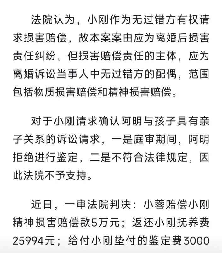 综上,一审法院判定李女士返抚养费2.5万元、赔偿精神损失费5万元,并支付陈先生鉴定费3千元。但陈先生认为赔偿太少了,因此,已向中院提出上诉。