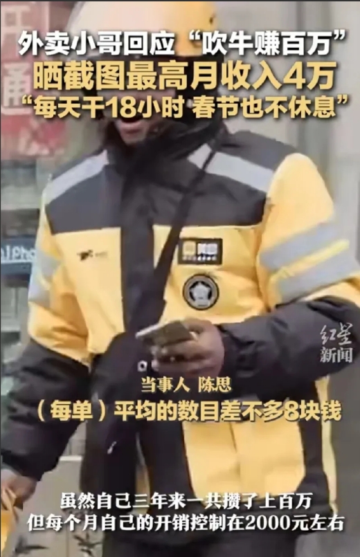 前不久,上海一外卖员小陈发视频称,他在三年时间内通过送外卖赚了102万,这一消息瞬间让很多外卖人员蠢蠢欲动,也想通过自身的努力一夜暴富。