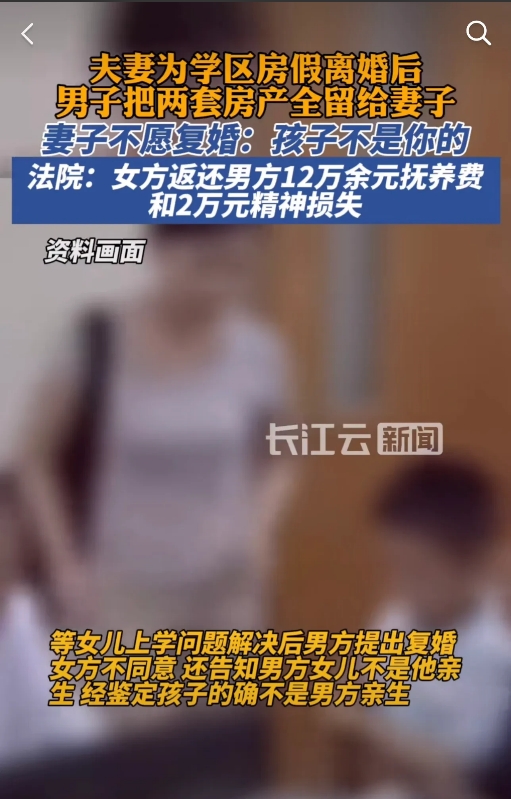 “杀人诛心!”湖北武汉,一男子将2套房,过户给妻子后净身出户,假离婚给女儿买学区房。岂料女儿上学后,妻子却拒绝复婚,还语出惊人:女儿不是你亲生的!网友:史上最惨男人!房子没了,老婆没了,孩子还不是自己的! (来源:长江云新闻)
