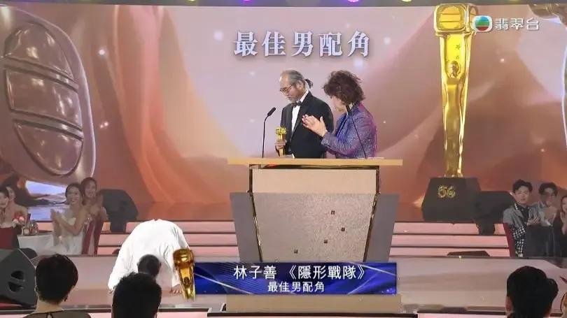 林子善熬了25年,终于拿到TVB颁奖礼最佳男配角,激动庆祝的场面确实非常让人感动。说起林子善,也许很多人不太熟悉。但是如果提到周星驰《喜剧之王》里面的洪爷,相信大家一定还记得!这个角色实在是太经典了! 林子善16岁在喜剧之王里面出道,虽然洪爷一角极其出彩,但因为身高和长相问题,他的演员生意并不顺利,之后大部分时间都在跑龙套,甚至有演过三级片。除了在怒火街头1和2里面演男三号米佐治算戏份比较重之外,大部分时间都是演一些不太重要的配角。直到这几年才开始又慢慢熬出来。 像林子善这样的长相,而且又不是亲生仔,能得这个奖真的不容易!虽然现在港剧日落西山,这个奖其实意义不大,但能得到这个奖也是对他的一个肯定。