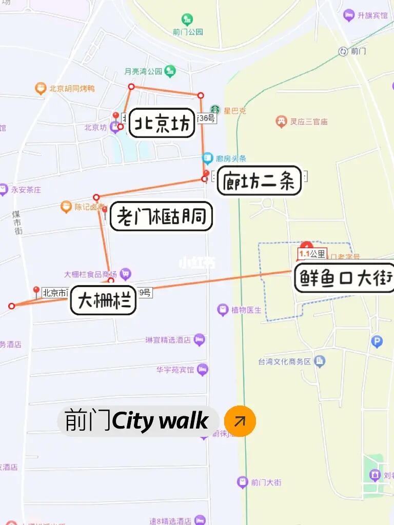 北京坊(pageone书店可以逛逛)➡️廊坊二条➡️老门框胡同(各种美食)➡️大栅栏主街(大红灯笼很有新年氛围)➡️鲜鱼口大街